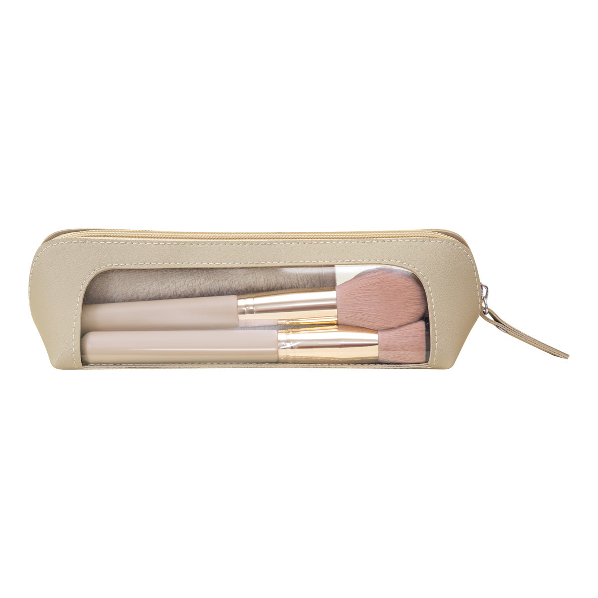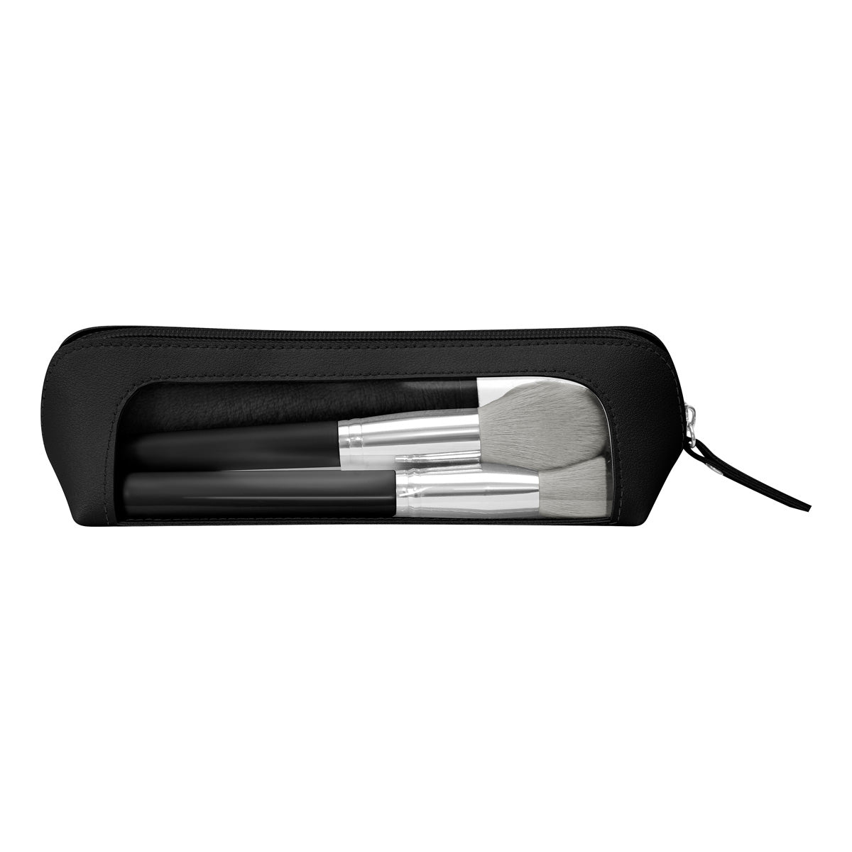 material: curpiel y pvc estuche / madera, aluminio y nailón brochas / poliéster toalla / látex esponja
