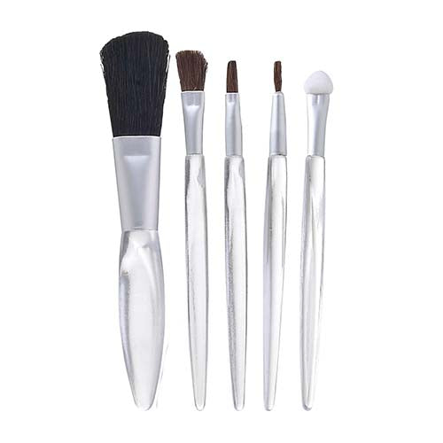 set con 1 brocha para rubor, 1 aplicador de sombra, 1 brocha para sombra, 1 brocha delineador, 1 brocha para labios y estuche.