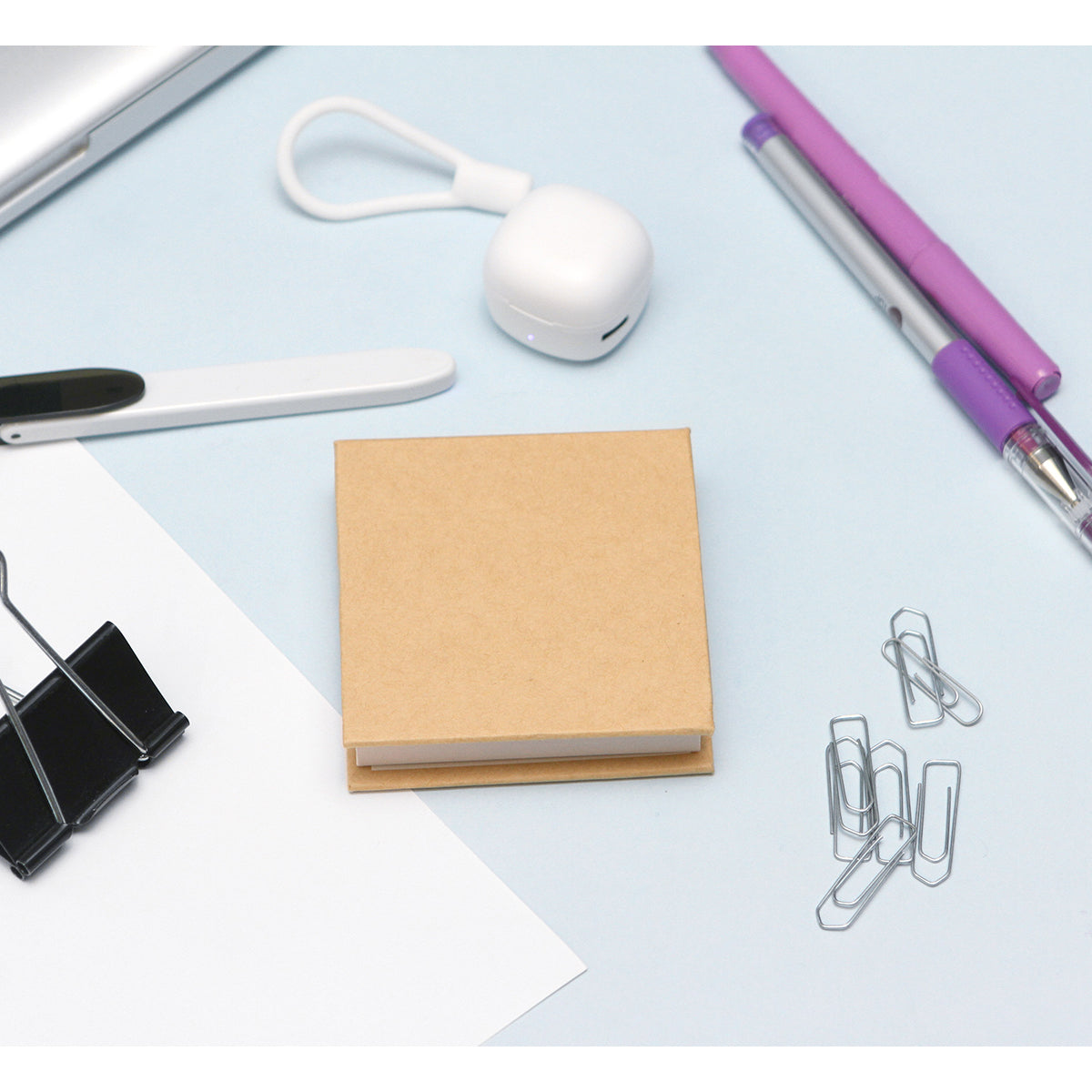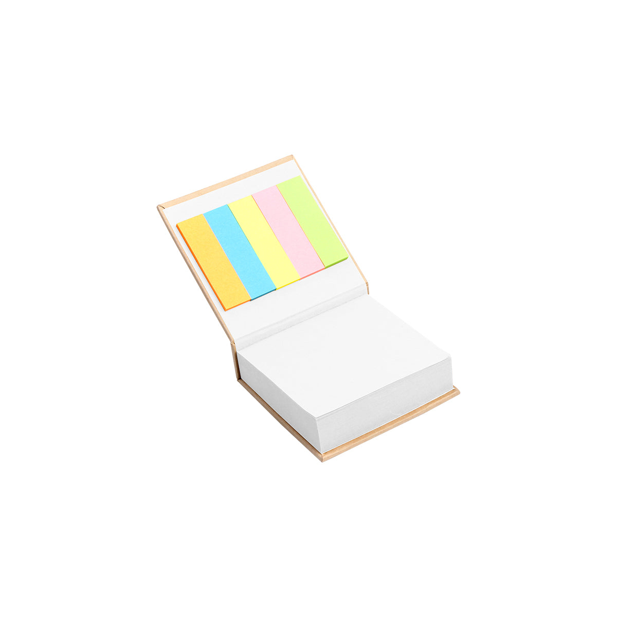 libreta ecológica de pasta rígida con notas de color blanco y banderitas de colores adhesivas. es una opción ideal para aquellos que buscan una libreta funcional y ecológica.