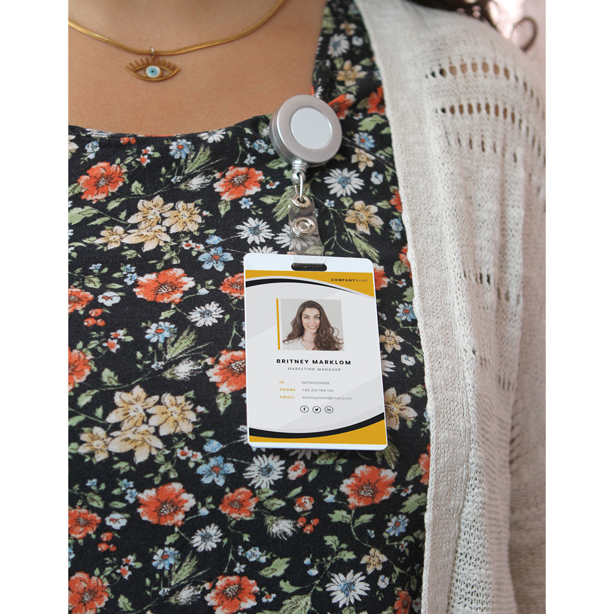 porta gafete retráctil de plástico sólido, es una opción confiable y duradera para mantener tus identificaciones a mano de forma segura. su diseño retráctil, clip de sujeción y construcción sólida lo convierten en un accesorio práctico y resistente.