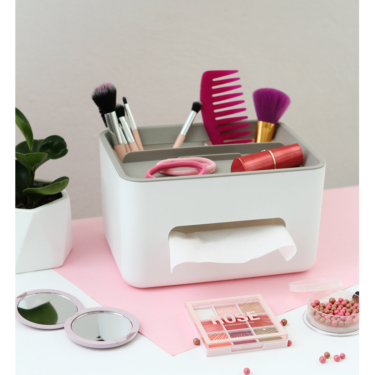 porta pañuelos desechables con porta celular y compartimentos para almacenaje, fabricado en plástico pp. es ideal para almacenar varios artículos de papelería o personales. la solución perfecta para organizar y llevar tus artículos de papelería o personales de manera ordenada y conveniente.