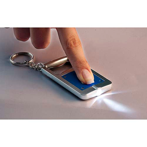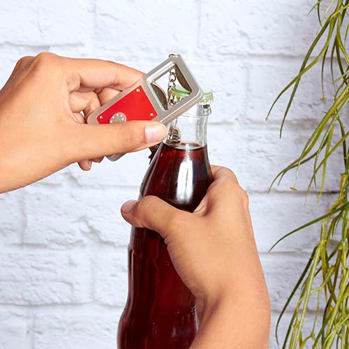 llavero destapador con lámpara de 1 led. incluye 2 baterías de botón.