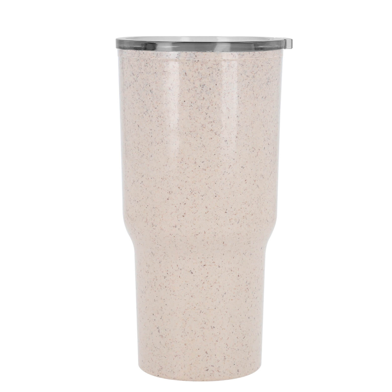 termo de rpet de doble pared hecho a base de caña con tapa que cierra a presión.