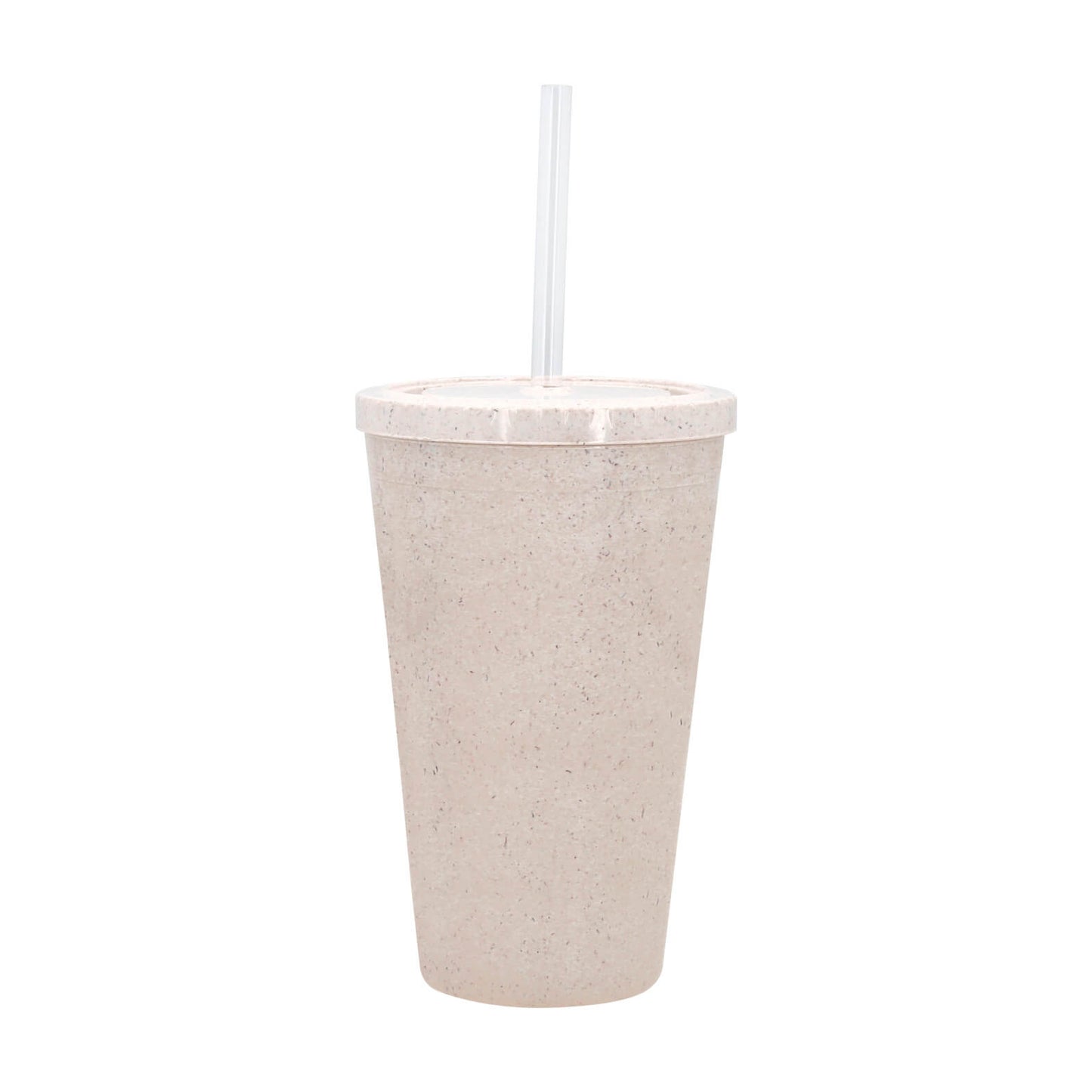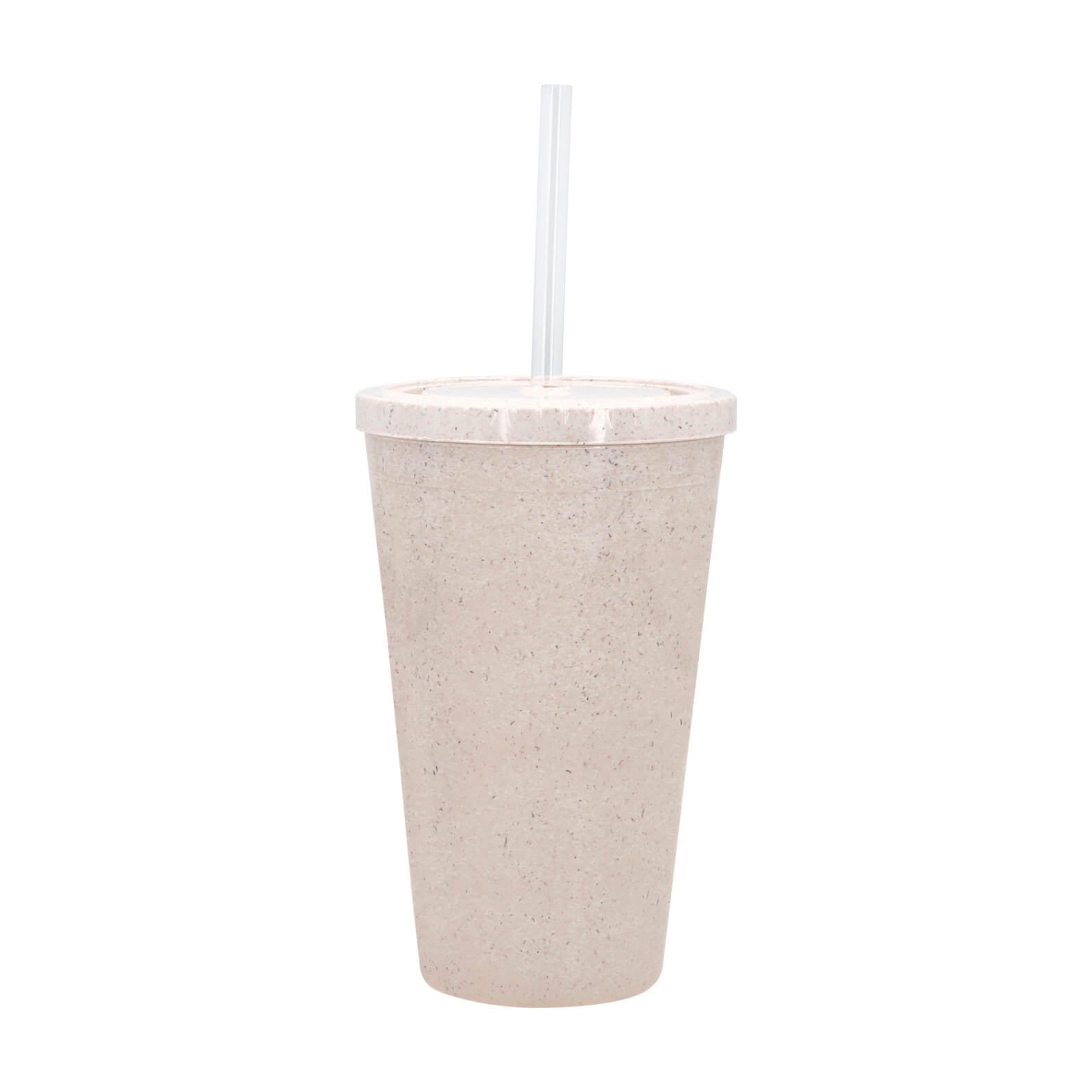 vaso de doble pared hecho a base de agave con tapa enroscable y popote