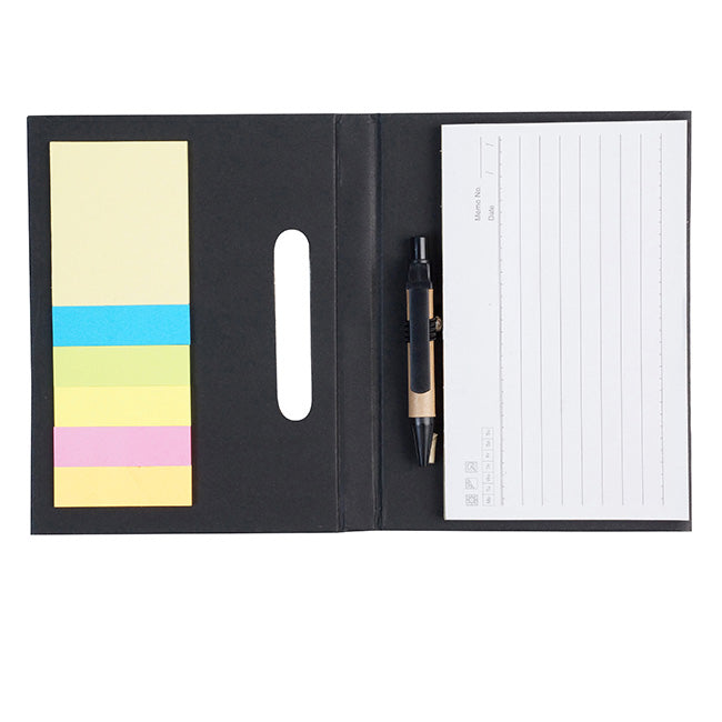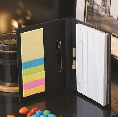 Block-Pad Loreto l 60 hojas con fechador a-temporal, Notas adhesivas, Incliuye mini-bolígrafo ecológico l Colores: Negro