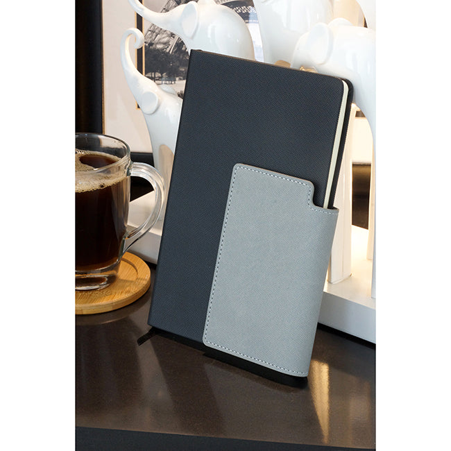 Cierre en ceja magnético. Bolsillo interior para tarjetas. Cinta divisoria. Aprox. 80 hojas rayadas.