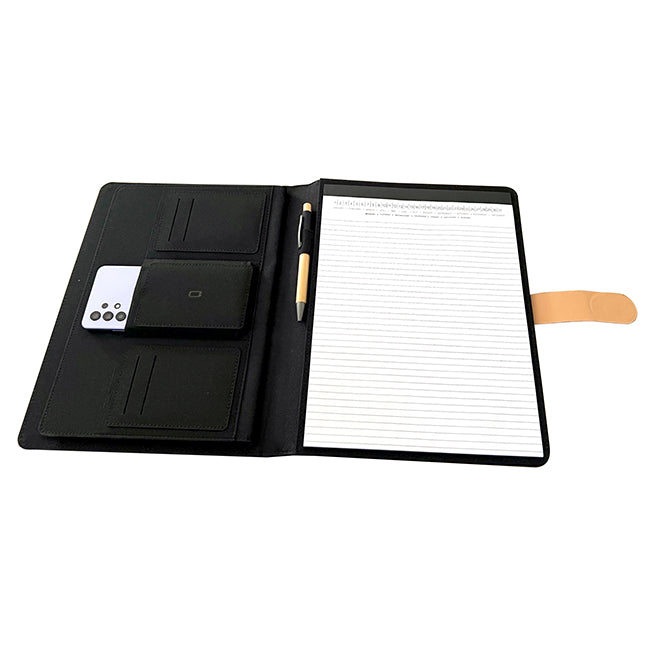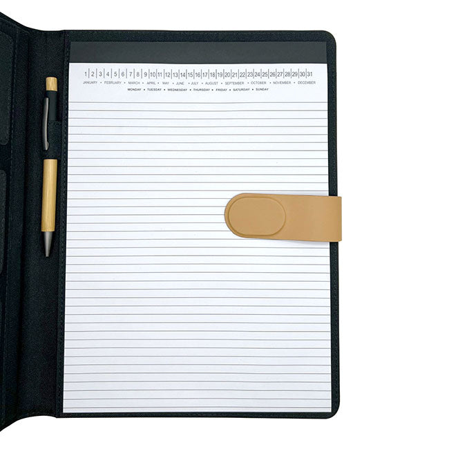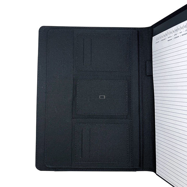 Porta Documentos Tokio l Incluye block de hojas rayadas. l Interior con portabolígrafos y compartimentos organizadores l Presiila en cierre magnético.