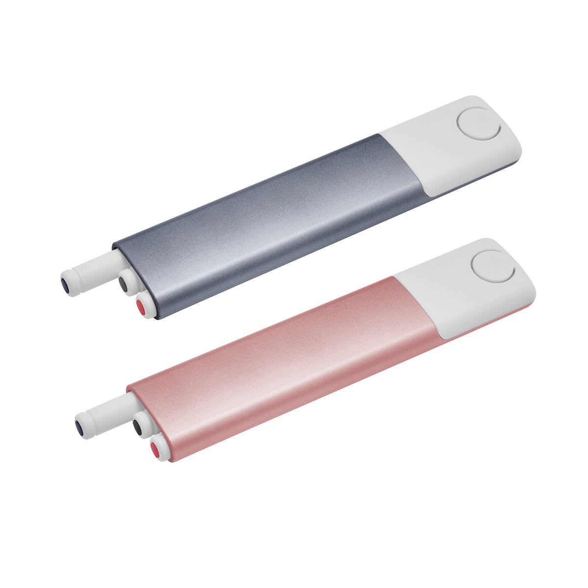 set de 3 bolígrafos de tinta negra, azul y roja. incluye estuche de plástico con sistema push. la base del bolígrafo indica la tinta con el color correspondiente.