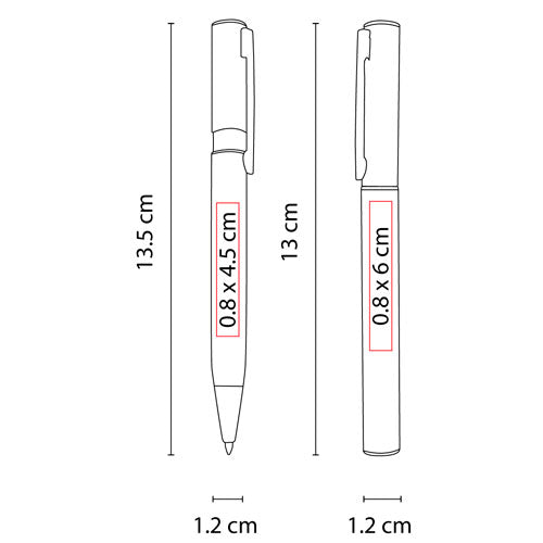 área de impresión: 0.8 x 4.5 cm ball point / 0.8 x 6 cm roller pen