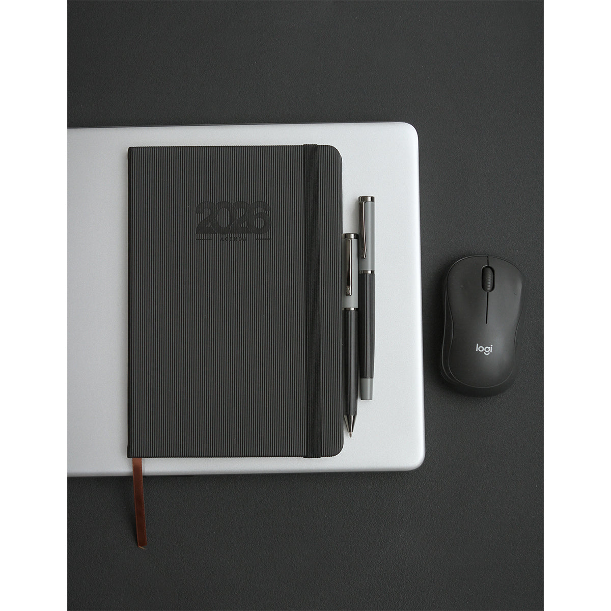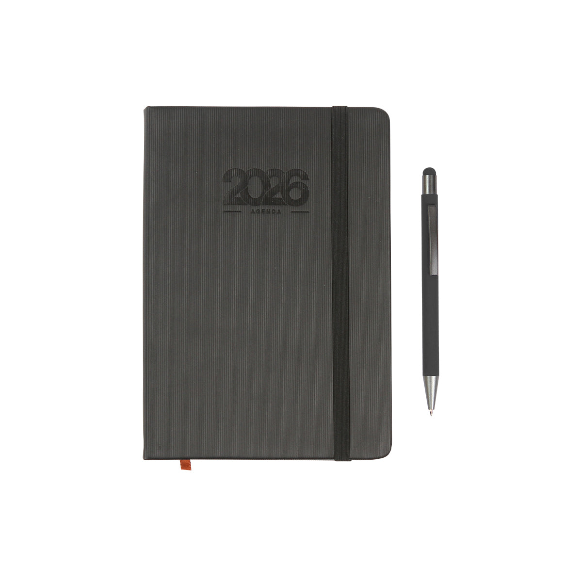 set de agenda diaria 2026 con pluma y caja de regalo. cubierta fabricada en curpiel (pu) con resorte sujetador e interior de 175 hojas de 65 g. (350 paginas) cada día tiene espacio para tareas importantes y está organizada por horario (5:00 am - 22:00 pm). cuenta con: separador de hojas, calendario anual 2025-2027, planeador mensual, hoja de objetivos anuales, hoja de pendientes mensuales, espacio para notas, tareas, sección de contactos y bolsillo interno para almacenar documentos. incluye caja de cartón individual y bolígrafo con tinta de escritura negra.