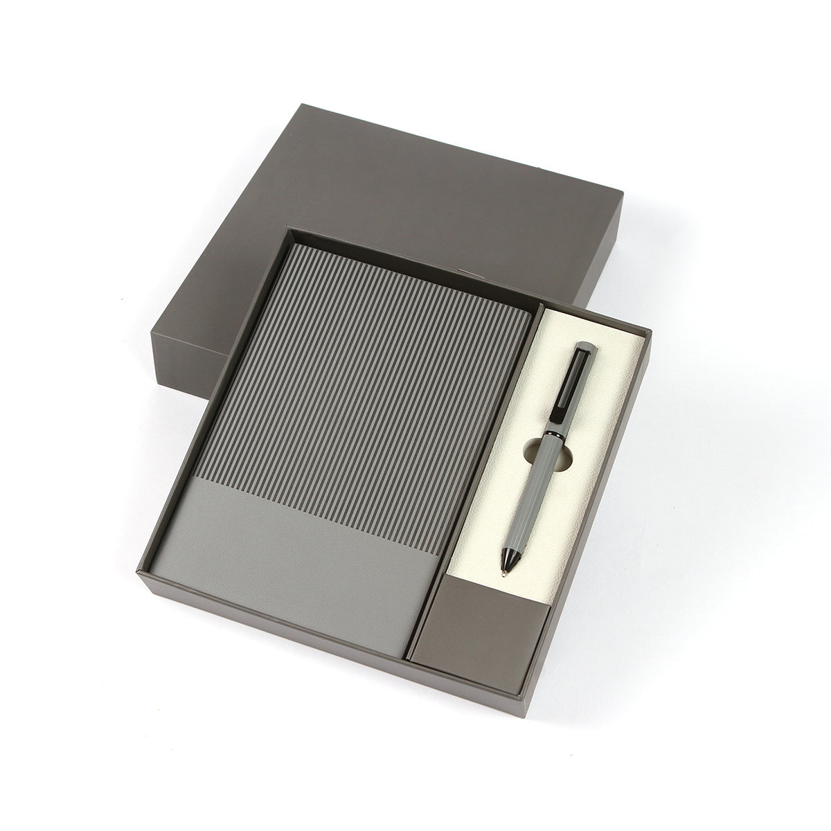 set ejecutivo, incluye libreta tamaño a5, de 80 g y 100 hojas, bolígrafo. set empaquetado en caja de regalo con diseño ejecutivo y espacio adecuado para guardar bolígrafo y libreta.