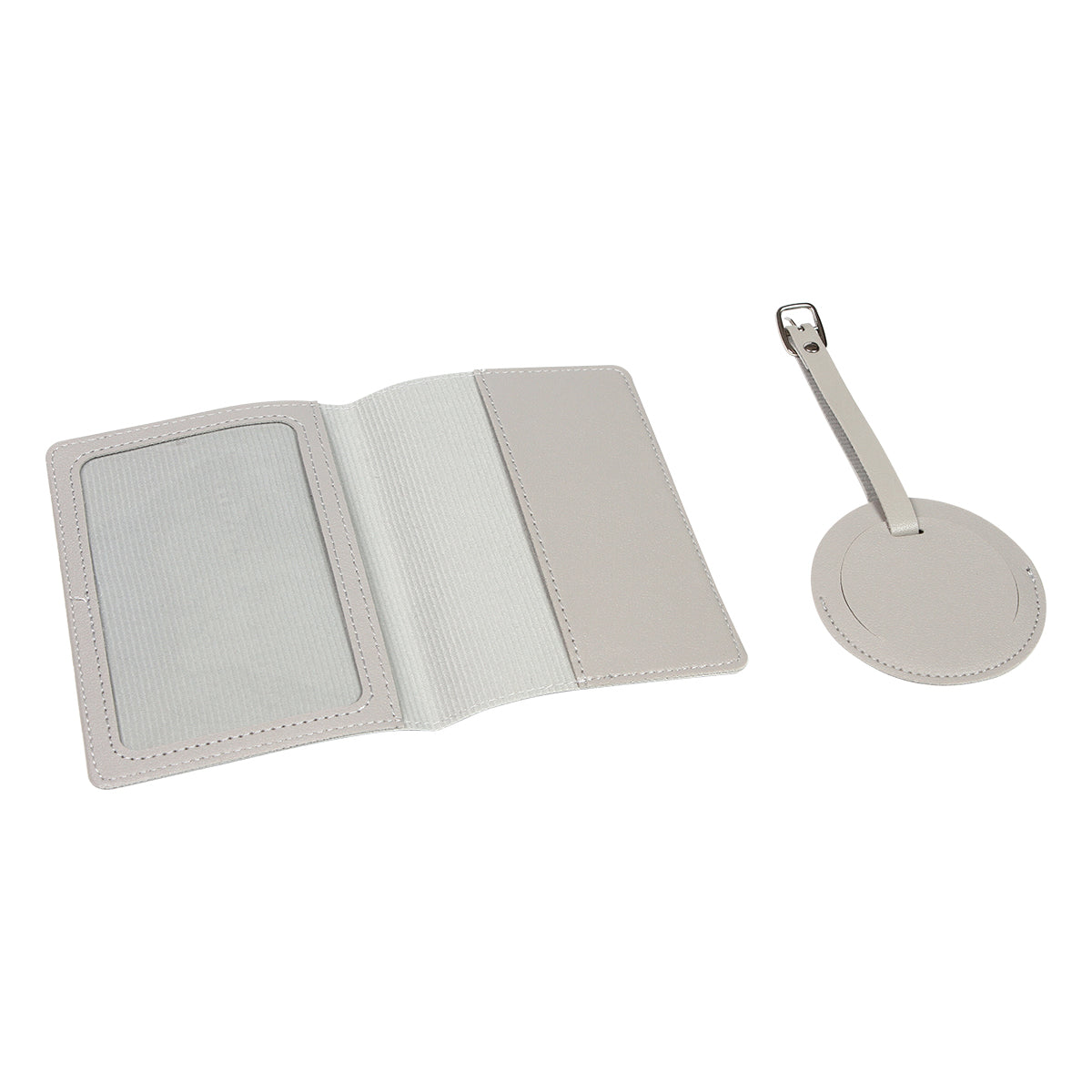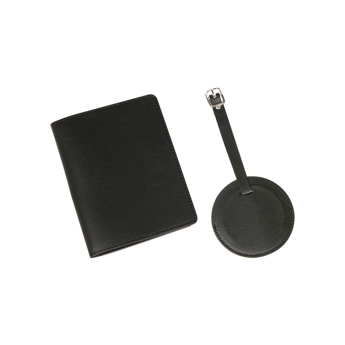 porta pasaporte con identificador de maleta fabricados en curpiel color sólido. el identificador en forma circular tiene una correa ajustable para sujetar en cualquier tipo de maleta. el porta pasaporte cuenta con la medida perfecta para tener este documento personal seguro en tus viajes además de dos compartimentos, uno con ventana transparente y otro de curpiel.