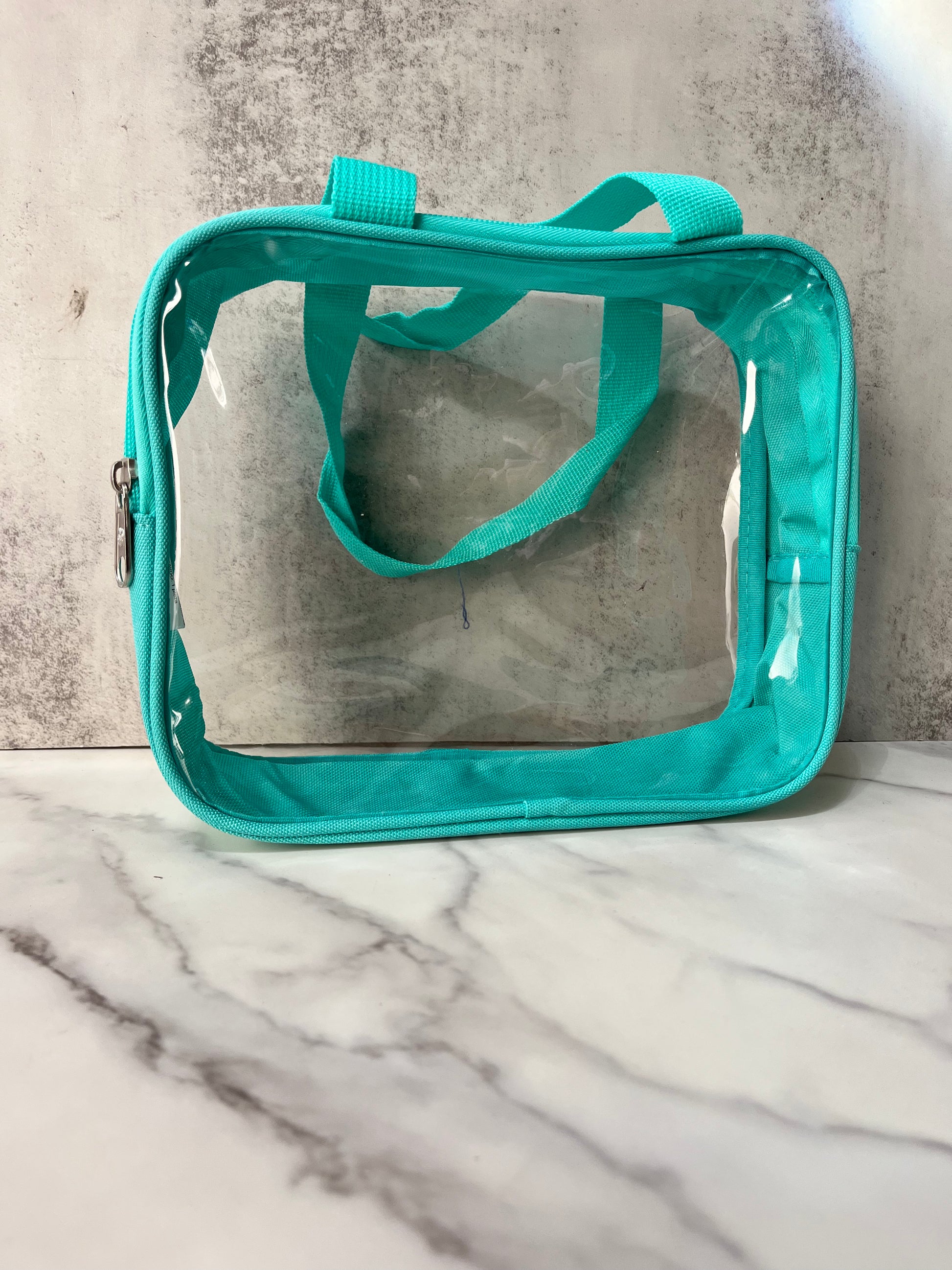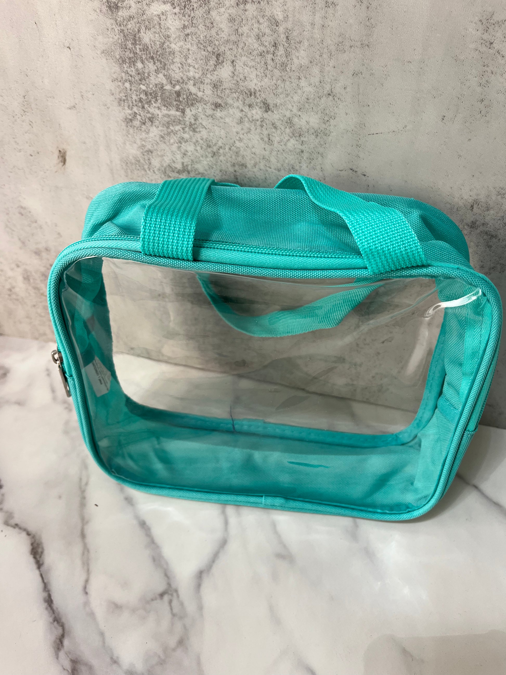 bolsa para accesorios con cierre, ventana transparente y asas para agarrar.