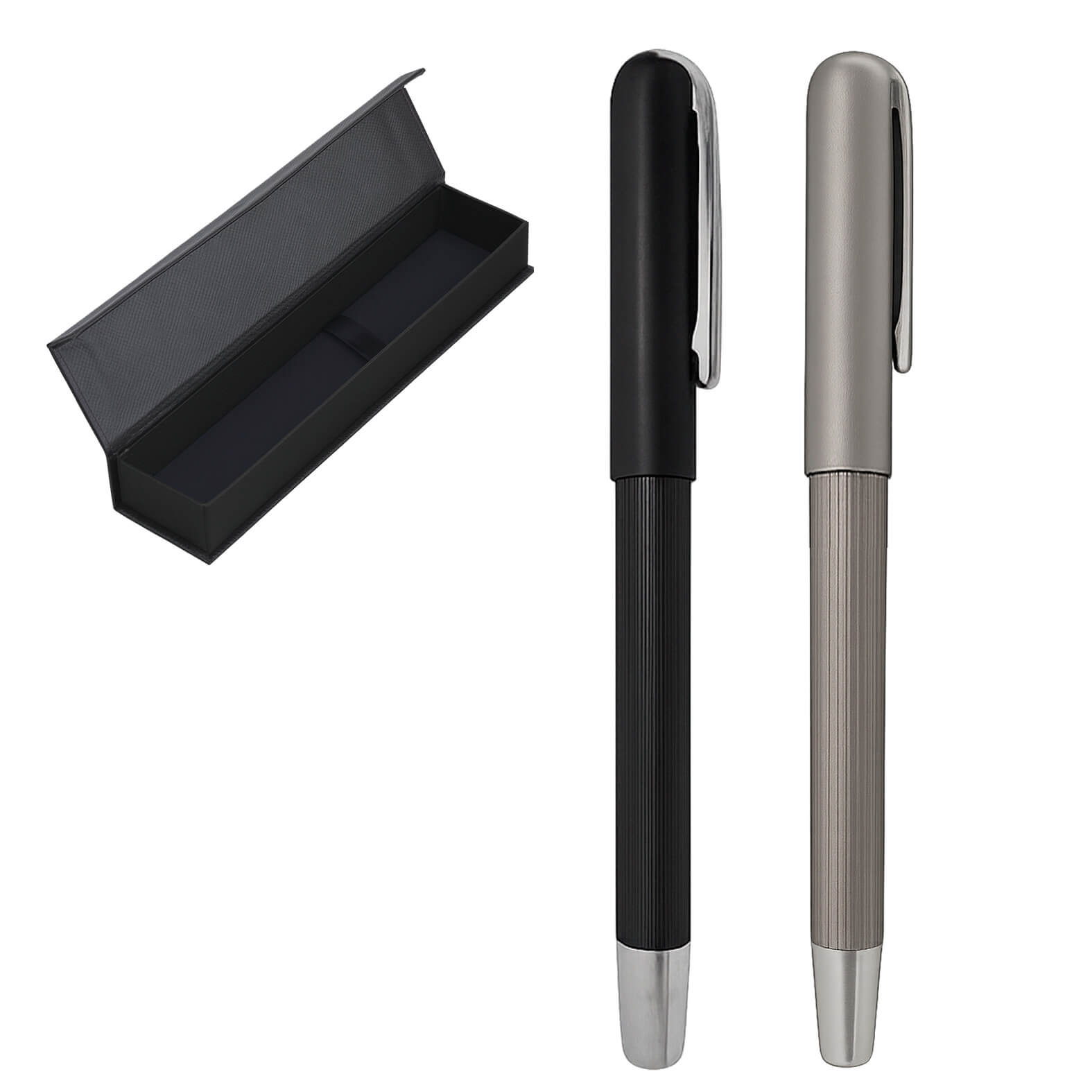 bolígrafo metálico con tapa. incluye estuche.
