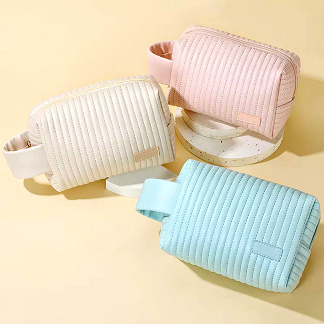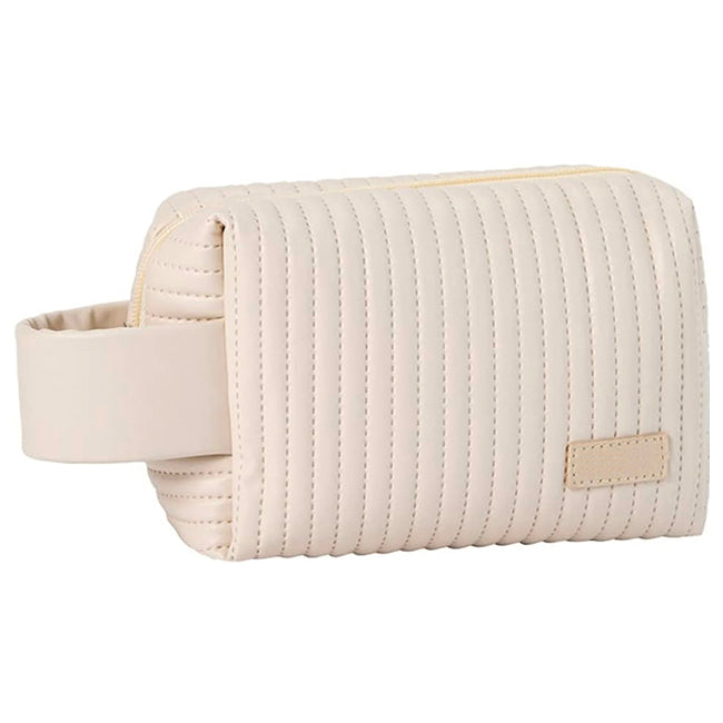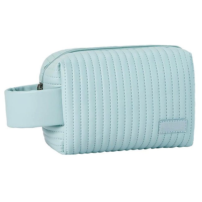 descripción del producto Cosmetiquera Cumbal Cierre en zipper con correa en lomo para sujetar. Etiqueta al frente para personalizar. Colores: Beige, Café, Celeste, Rosa y Verde