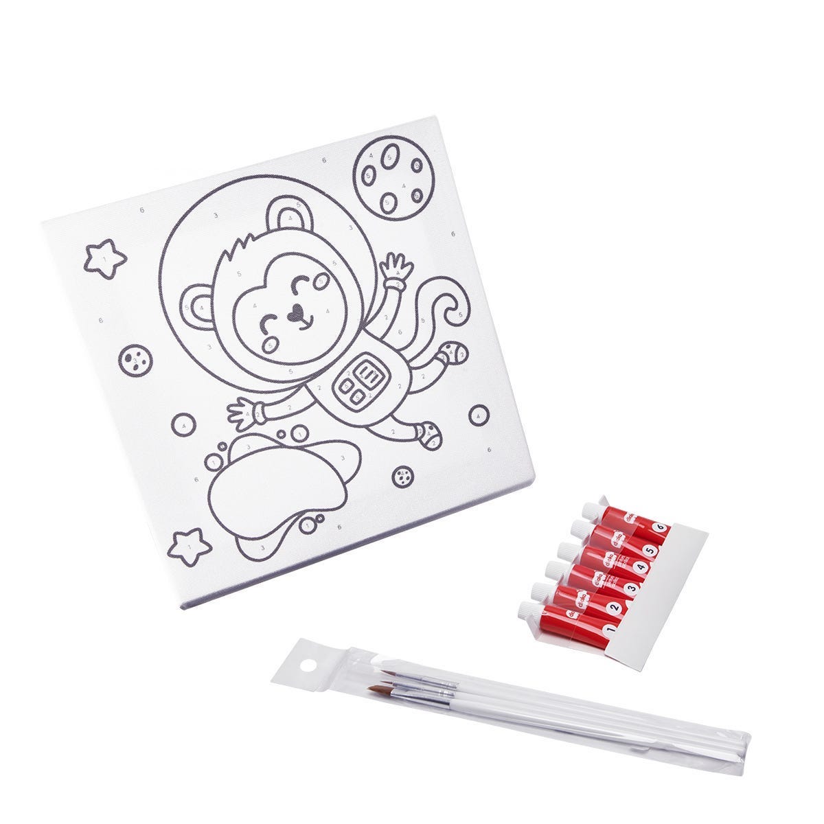 lienzo para pintar. cultiva el sentido del arte en los pequeños, les permite pintar fácilmente siguiendo los números guía para cada color. incluye lienzo, 6 pinturas de colores y 3 pinceles de diferente grosor.