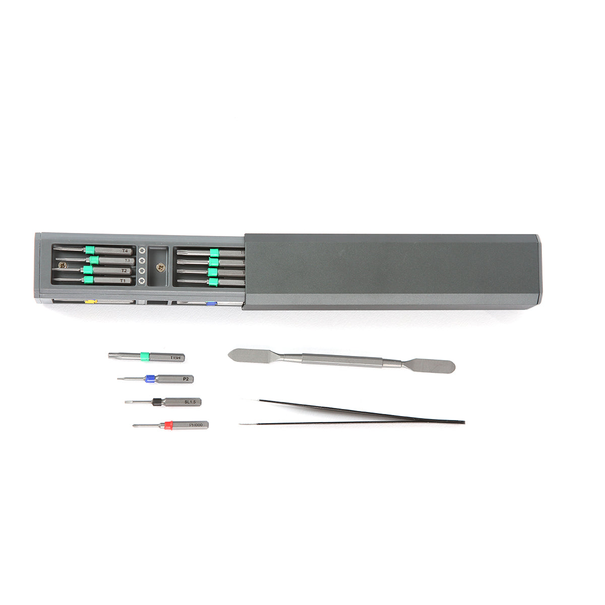 set de destornilladores fabricado en aluminio, plástico abs, con herramientas fabricadas en acero #45. este set contiene 30 piezas en total, distribuidas de la siguiente manera: destornillador modelo ph000, ph00, ph0, ph1, sl1.5, sl1.7, sl2.5, sl3.0, t1, t2, t3, t4, t5, h1.5, h2.0, h2.5, t6h, t8h, t10h, t15h, t20h.