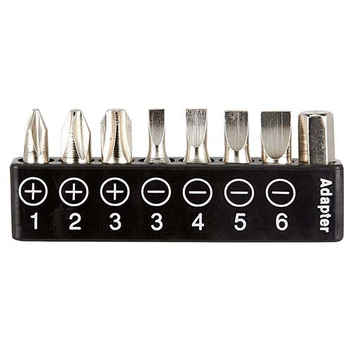 contiene desarmador con 16 puntas y 8 dados diferentes e intercambiables. incluye estuche.