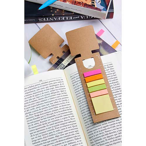 incluye notas adheribles: 25 amarillas y banderillas de 5 colores. regla de 14 cm impresa.