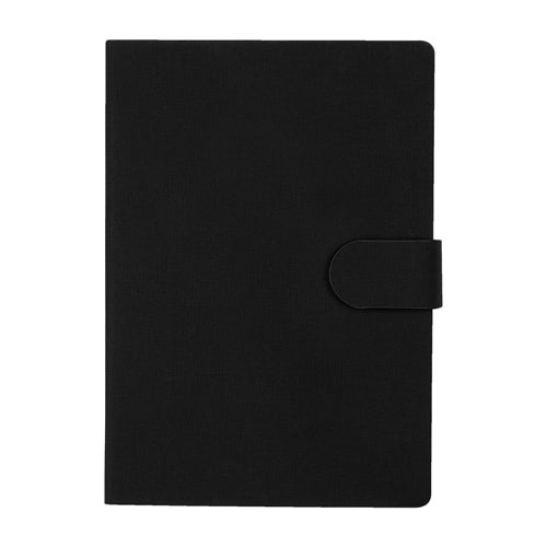 block de notas con 70 hojas de raya medida 12 x 18 cm. incluye notas adheribles con los días de la semana, bolígrafo ecológico y broche imantado para cerrar.
