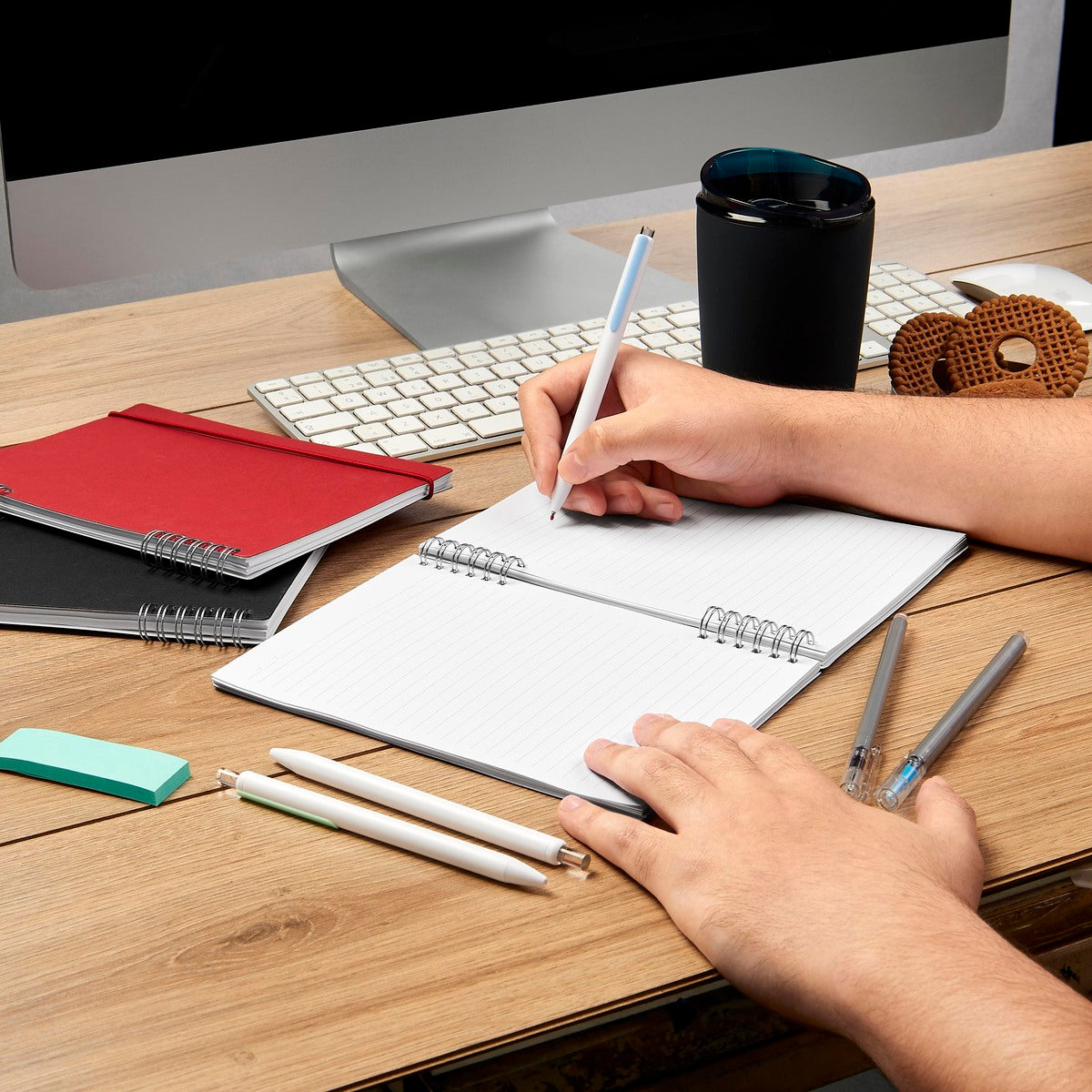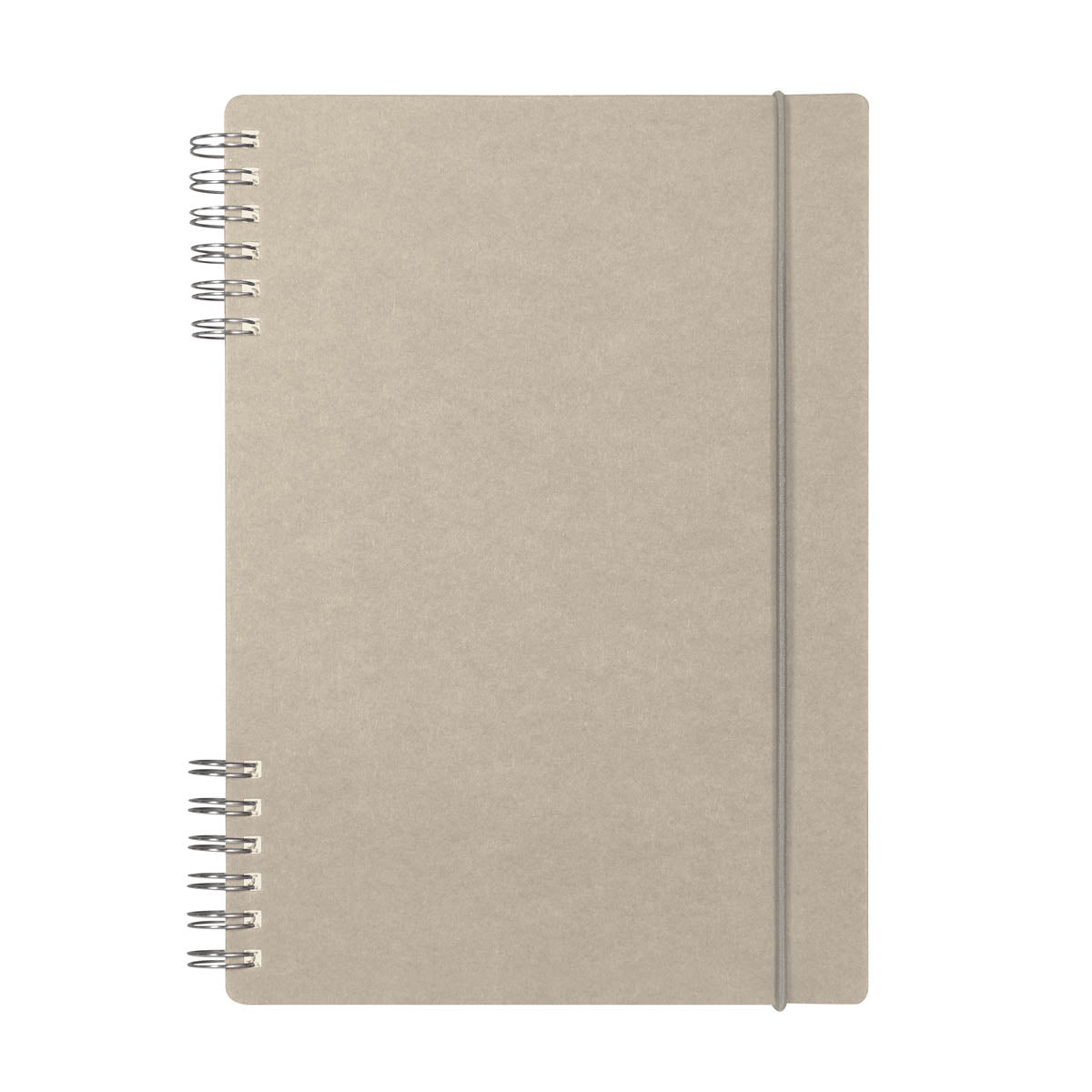 libreta ecológica con 70 hojas a rayas. cubierta de cartón. incluye espiral metálico y elástico para cerrar. su diseño divide el espiral aportando un toque distintivo de las libretas convencionales. una elección sostenible que resaltará tu pasión por el medio ambiente.
