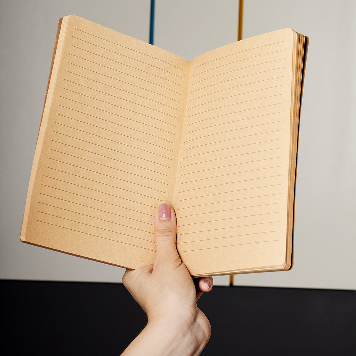 libreta con 60 hojas: 20 de rayas, 20 con puntos y 20 en blanco. pasta y hojas de papel kraft.