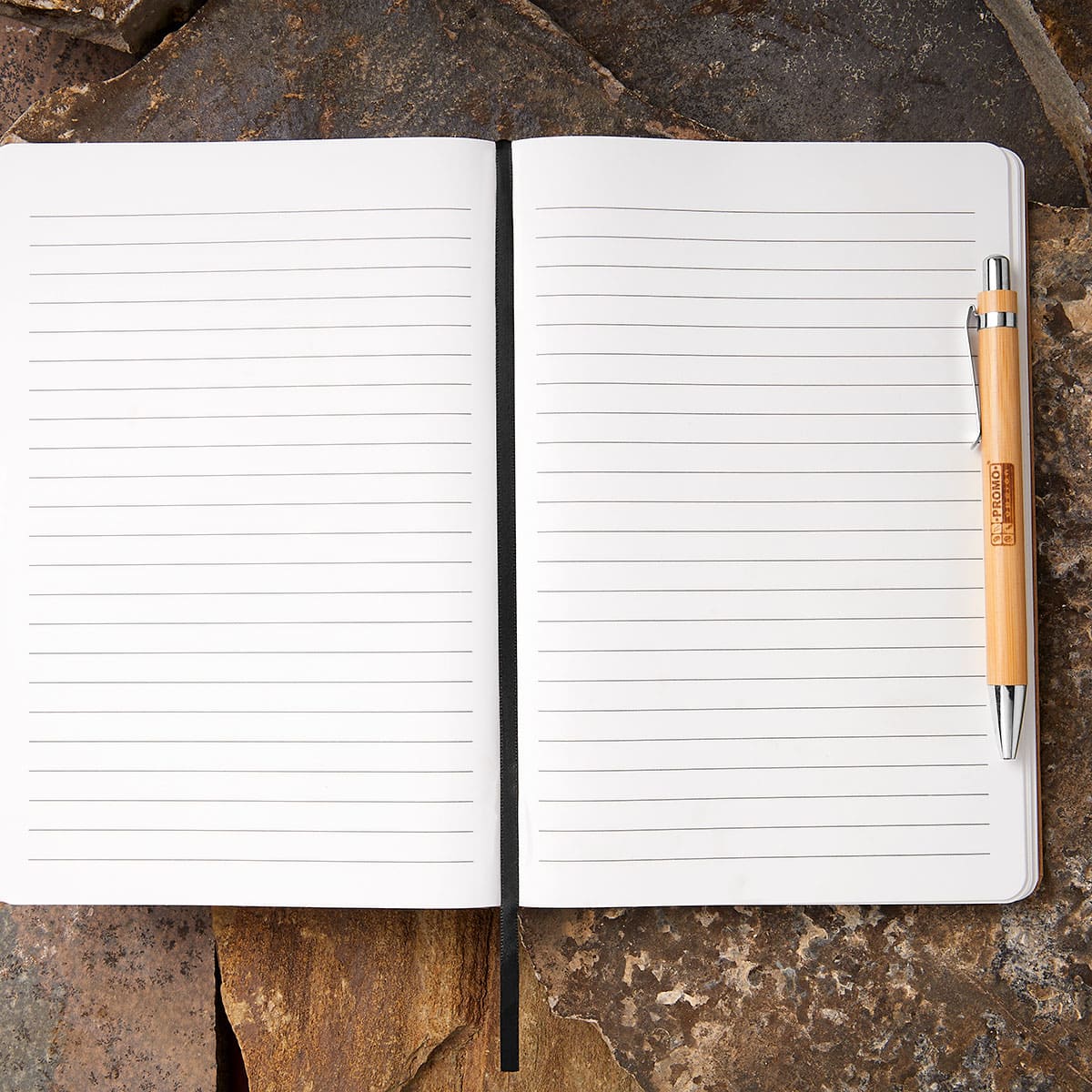 libreta con 80 hojas de raya. las hojas interiores están fabricadas a base de piedra natural. este papel es resistente al agua, al desgarro y a las manchas. incluye elástico y listón separador. bolígrafo no incluido.