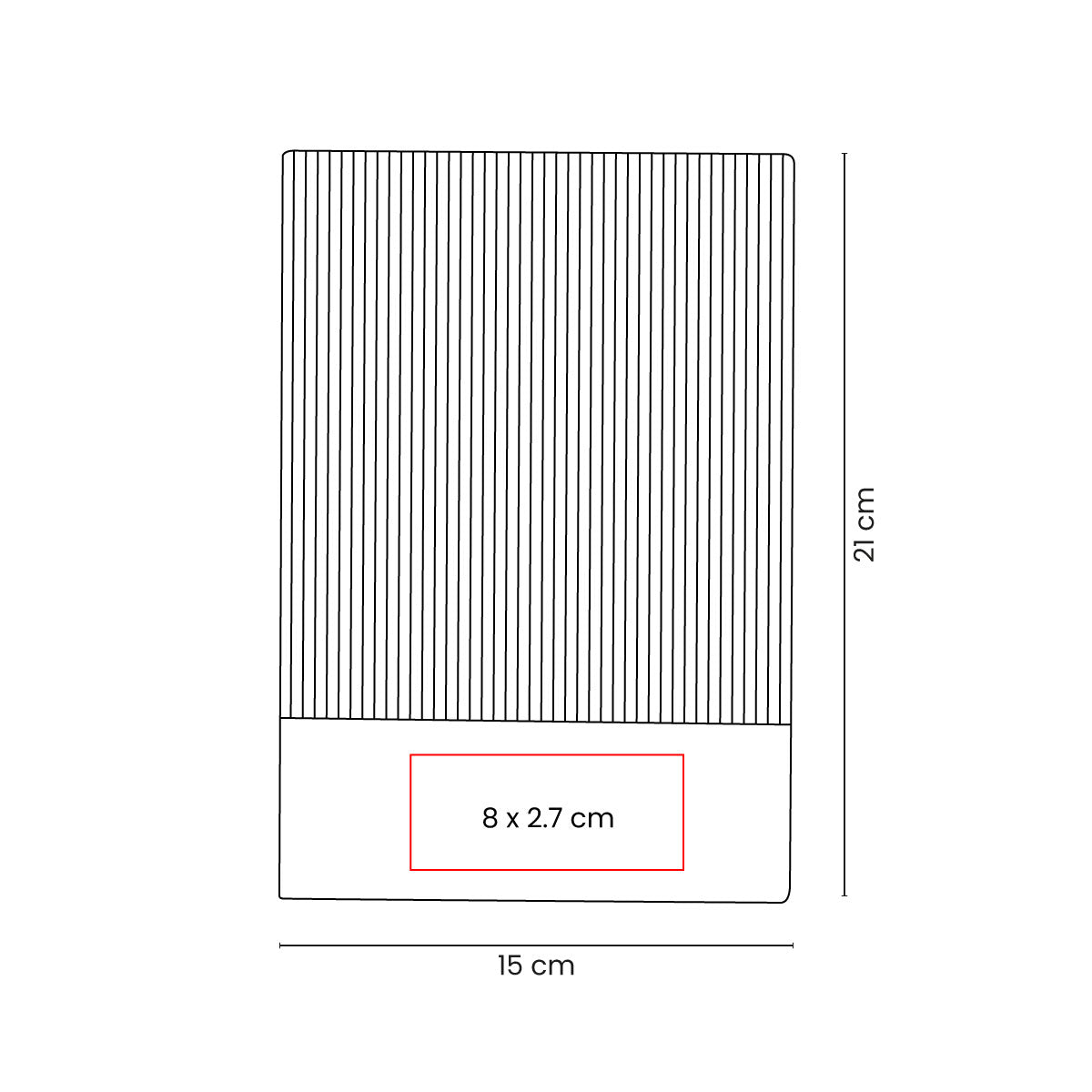 libreta con 100 hojas a rayas. pasta que combina dos tipos de textura: una suave con líneas verticales y otra lisa. los bordes de las hojas son del mismo color que la pasta. cada página está diseñada con un apartado especial para poner la fecha, permitiéndote organizar tus notas y escritos de manera cronológica.