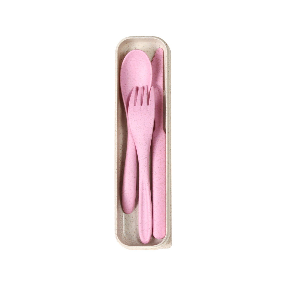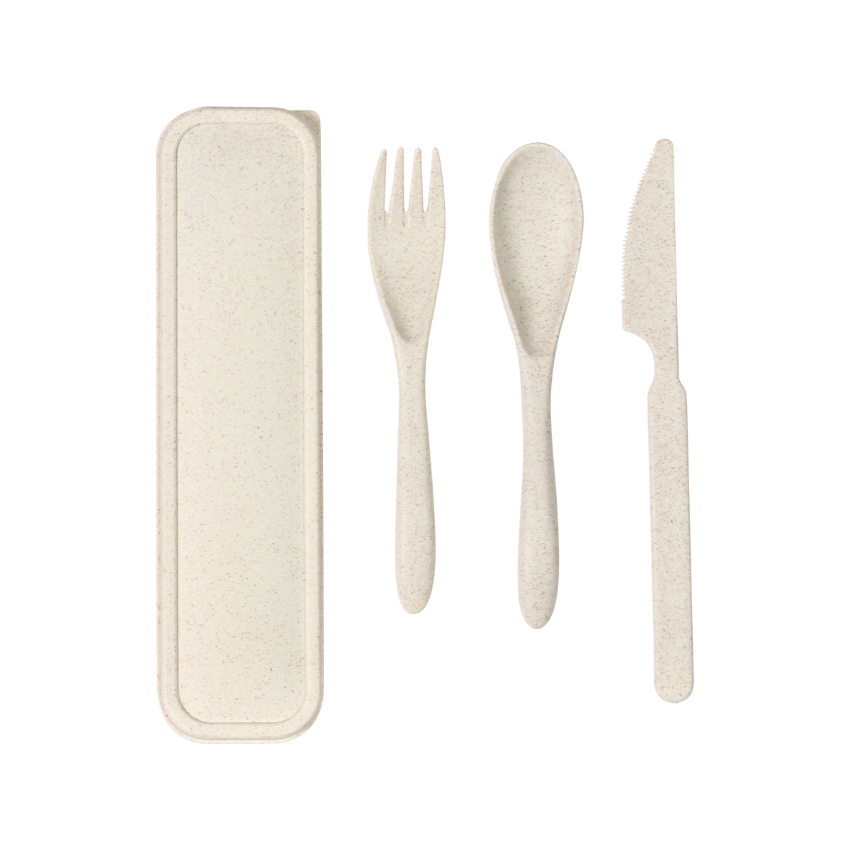 set de cubiertos fabricados en fibra de trigo. es una opción sostenible, práctica y duradera para disfrutar de tus comidas en cualquier momento. con su cuchara, tenedor y cuchillo, tendrás todo lo necesario para disfrutar de tus comidas de manera cómoda y eficiente. además, su estuche de fibra de trigo te permite almacenar y transportar los cubiertos de manera fácil y eficiente.