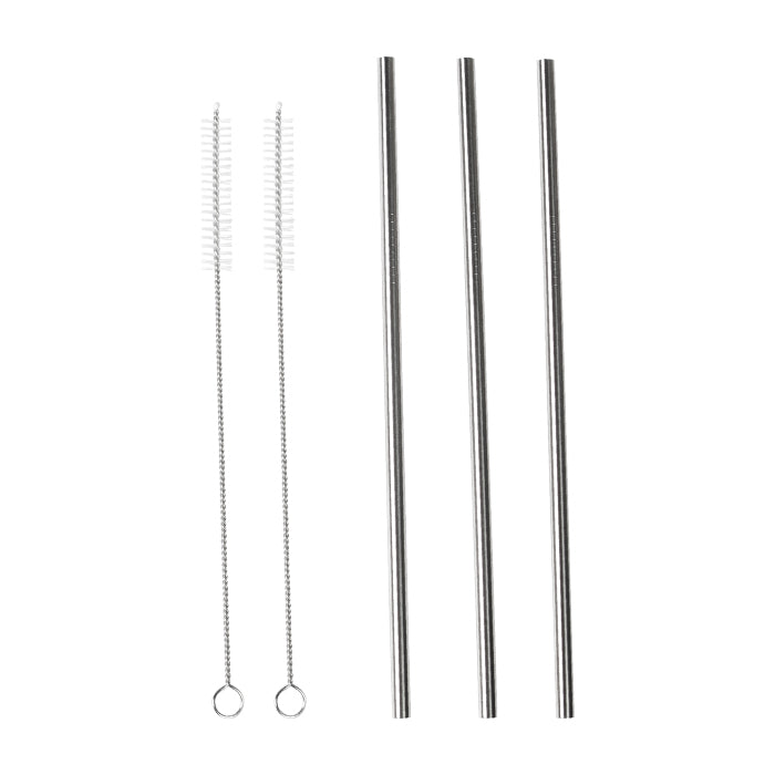 set de 3 popotes de acero inoxidable reutilizables y 2 cepillos limpiadores con bolsa individual de tela de fácil cierre y apertura. los popotes se pueden grabar y la bolsa cuenta con amplia área para impresión. son ideales para viajar y responsables con el medio ambiente.