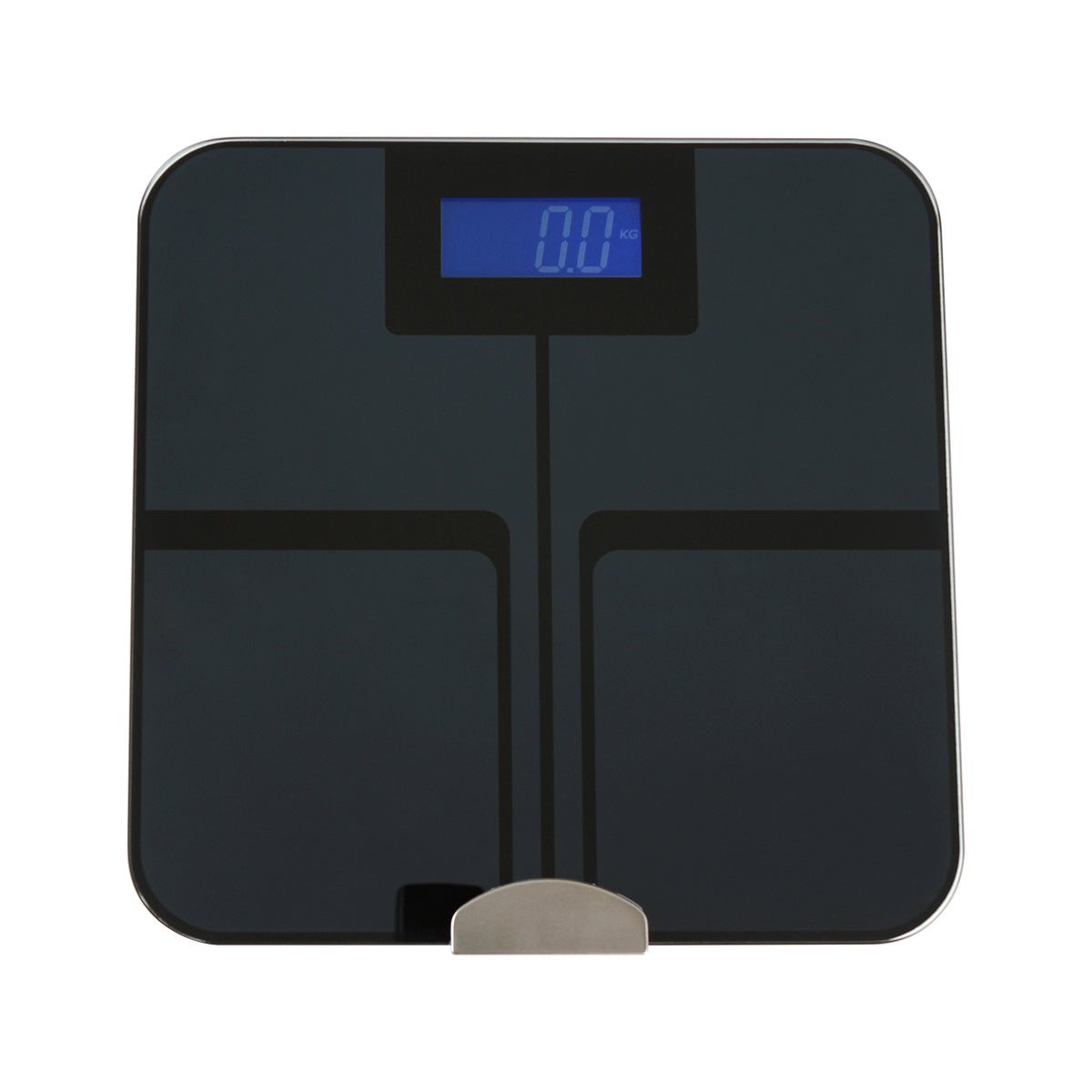 báscula de cristal templado con base de plástico, app para vincular a dispositivo móvil, ocupa 4 baterías aaa, (no incluidas) se puede monitorear: peso, índice de masa corporal, grasa corporal, agua corporal, masa muscular, grado de obesidad, proteína, masa ósea, edad visceral, entre otras. capacidad de 3 a 180 kg.
