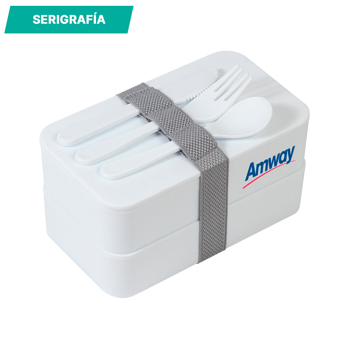 contendor para alimentos, fabricado en polipropileno (pp) con material antibacterial (iones de plata). incluye cuchara, tenedor y cuchillo, fabricados en los mismo materiales. el material antibacterial con certificación iso 22196 inhibe hasta en un 99.9% el crecimiento y multiplicación de bacterias. el aditivo tiene como base los iones de plata, tecnología que ha sido reconocida y utilizada durante siglos y que no tiene efectos dañinos.