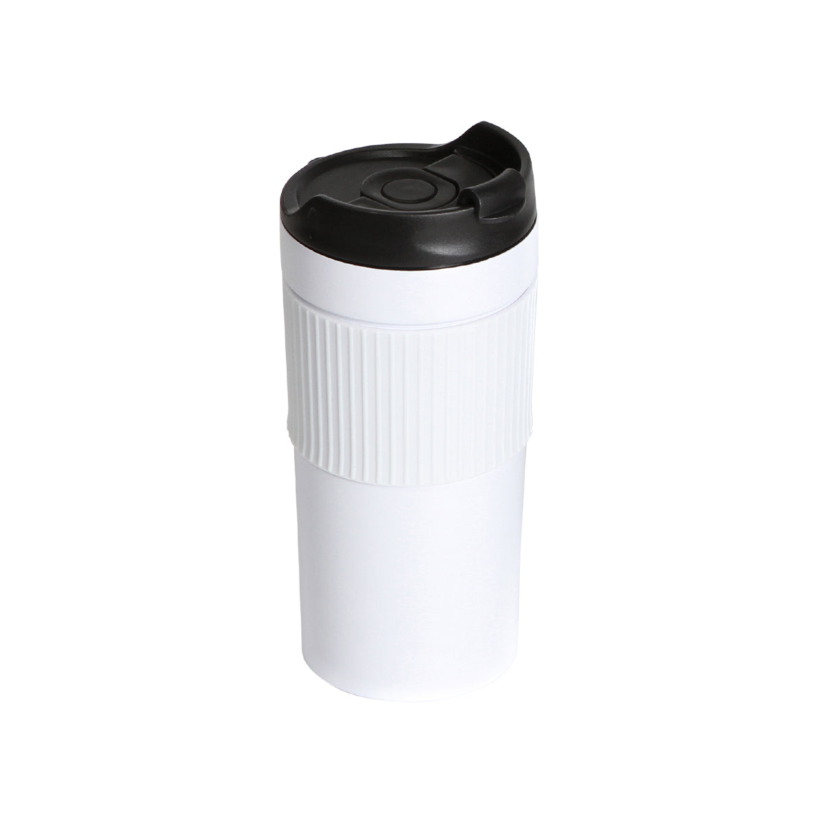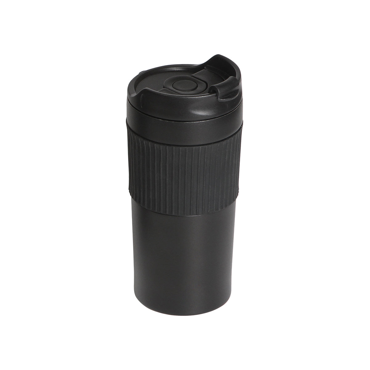 termo de doble pared de acero inoxidable con manga de silicón con prensa francesa de acero inoxidable, tapa hermética anti derrame con cubierta de seguridad, fabricado en materiales de grado alimenticio, mantiene bebidas calientes por un largo tiempo, no usar en microondas. capacidad de 480 ml. incluye caja de cartón individual.
