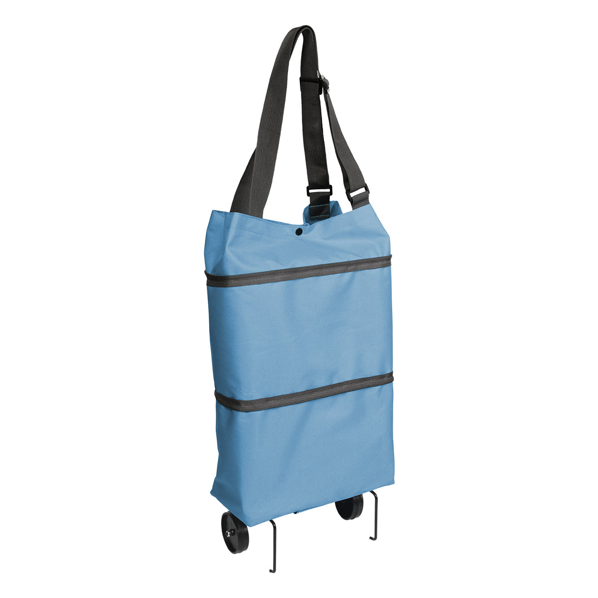 carrito plegable fabricado en poliéster 600d con recubrimiento de pvc, base de mdf, correas de nylon ajustables, resistente al desgaste y llantas de goma. se convierte en una practica y reutilizable bolsa de mano, es ideal para ir de compras de manera cómoda. capacidad de carga 10 kg.