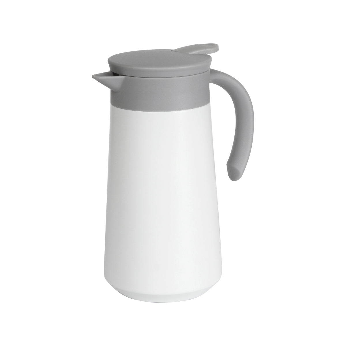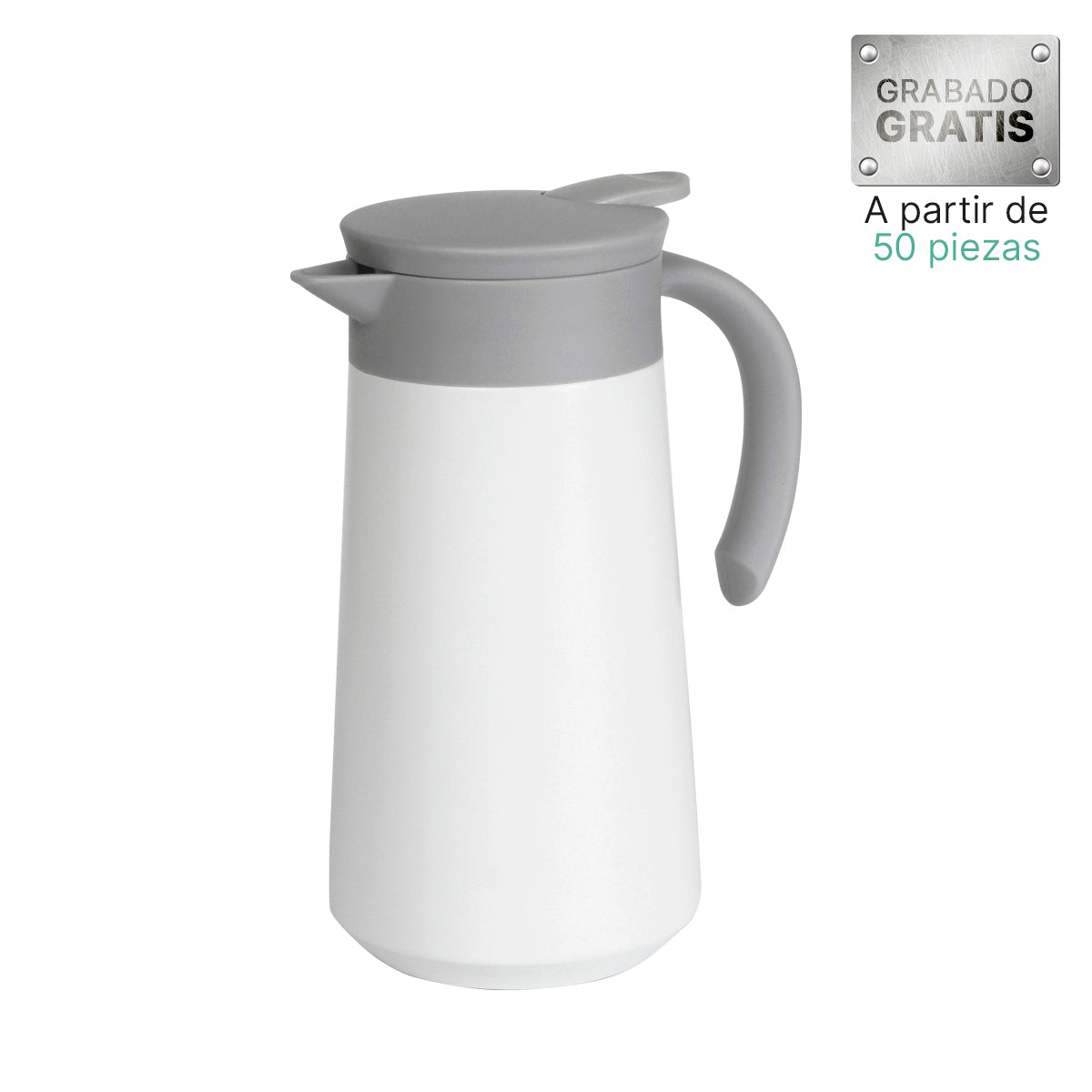 jarra doble pared de acero inoxidable, tapar y asa de polipropileno. fabricado en materiales de grado alimenticio, mantiene bebidas calientes por un largo tiempo, no usar en microondas. capacidad de 800 ml. incluye caja de cartón individual.
