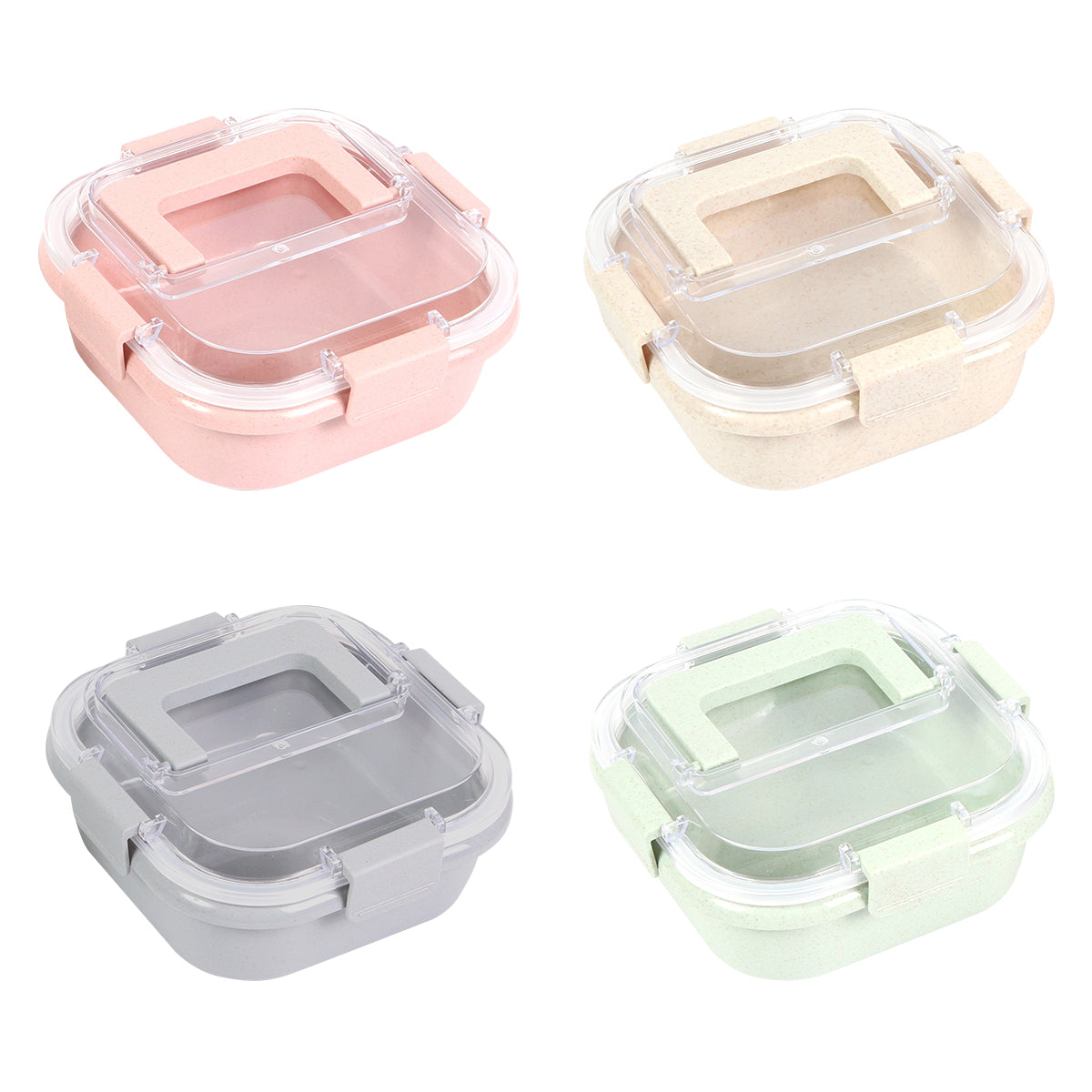 contenedor de alimentos fabricado en polipropileno (pp) y fibra de trigo, con tapa fabricada en poliestireno (ps) y broches de seguridad.