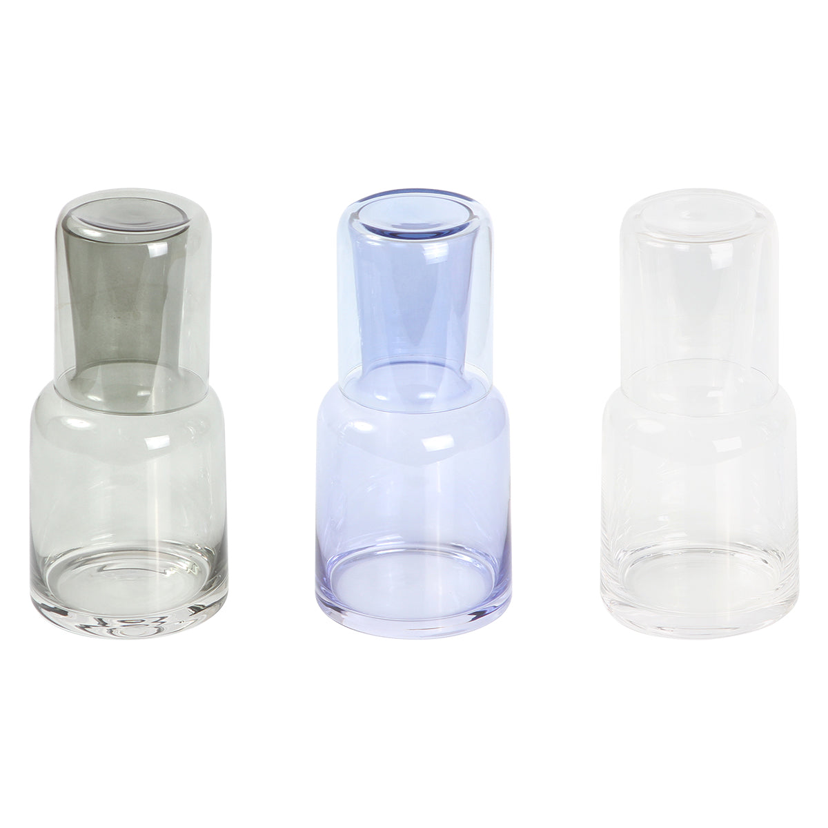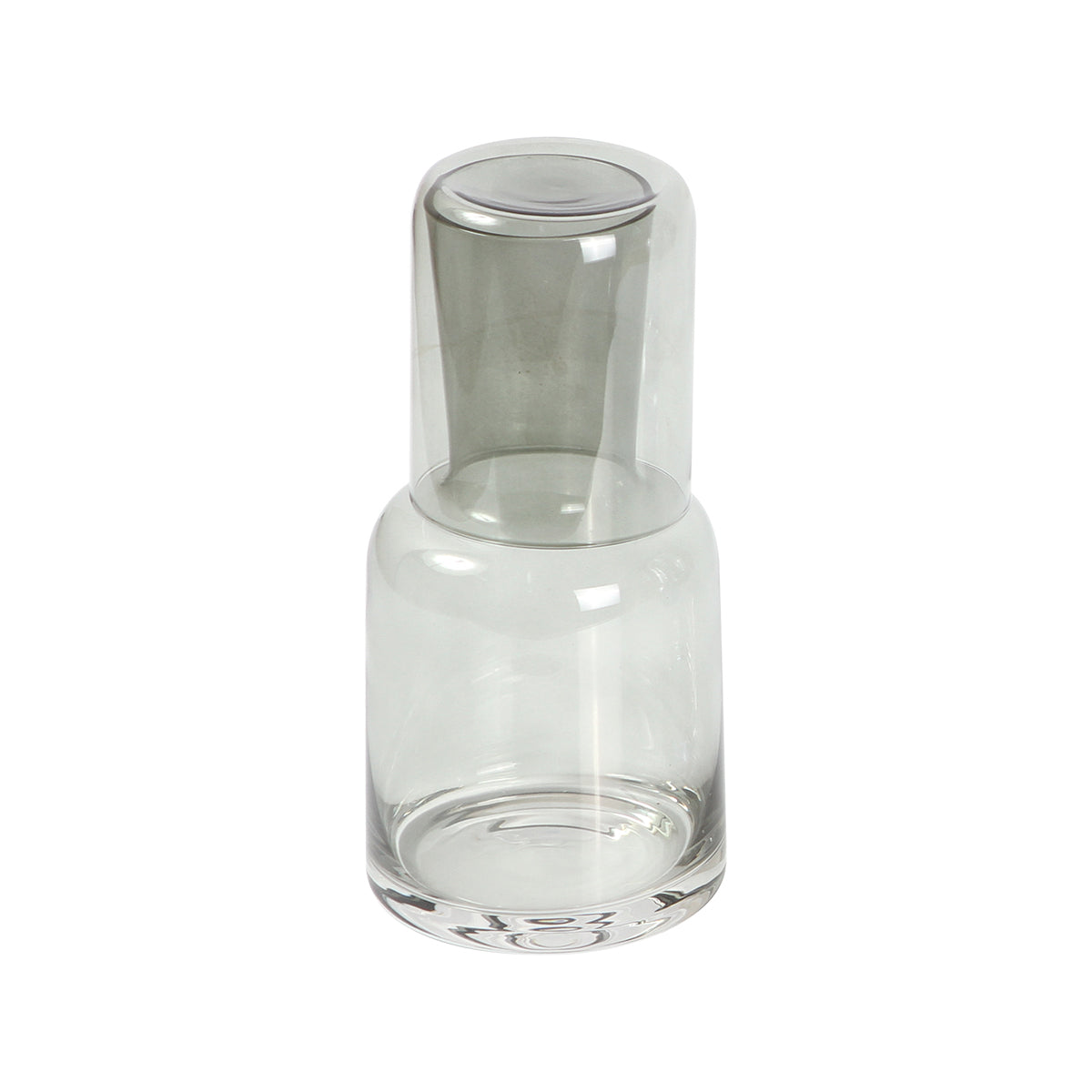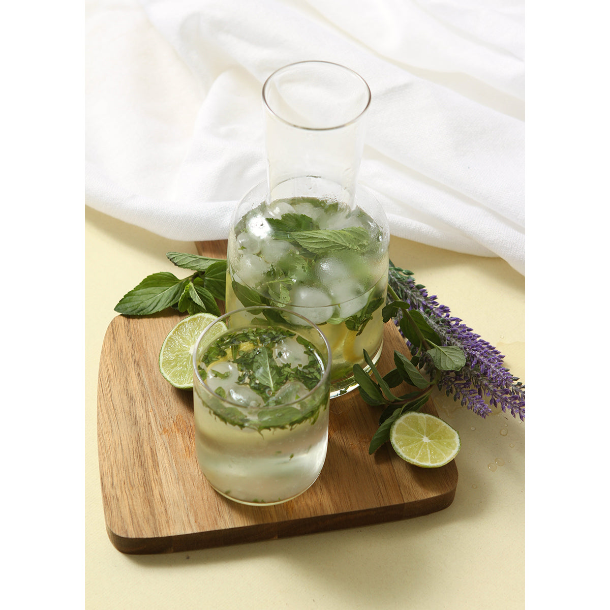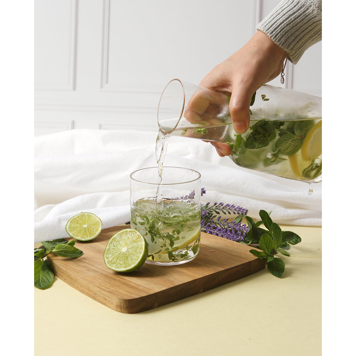 jarra de vidrio con efecto translucido, capacidad de 700 ml. incluye vaso con capacidad de 200 ml, que puede usarse como tapa para la jarra.