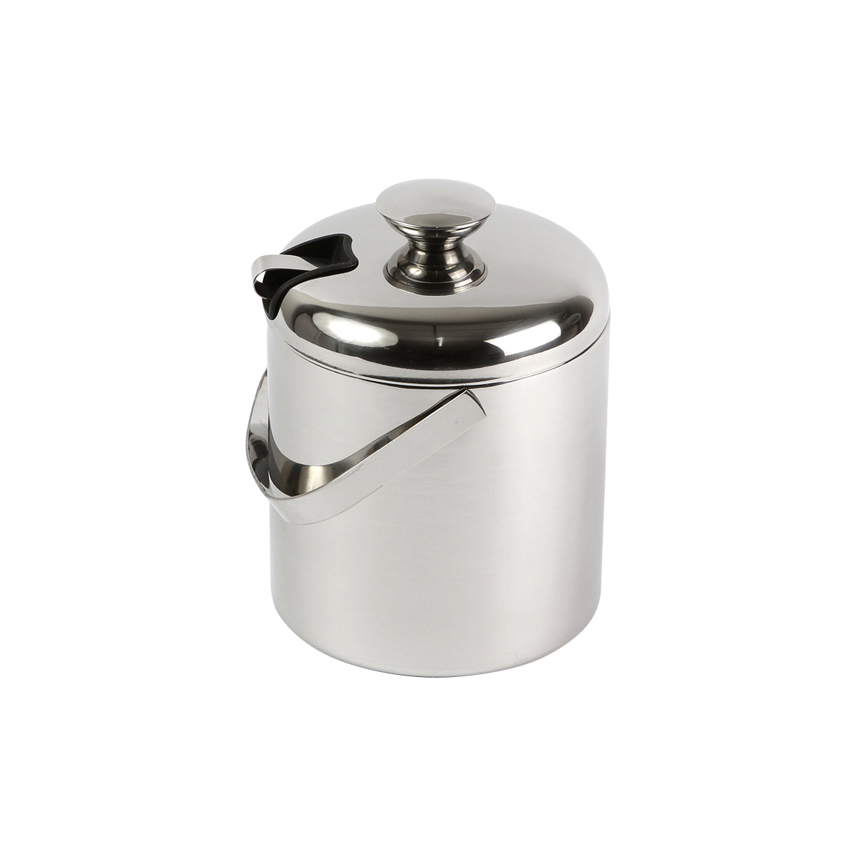 hielera fabricada en acero inoxidable 304. capacidad de 1.4 litros, cuenta con asa sujetadora y tapa que incluye sección para guardar las pinzas. su acabado elegante la hace ideal para reuniones, eventos o como accesorio imprescindible en el hogar y la oficina.