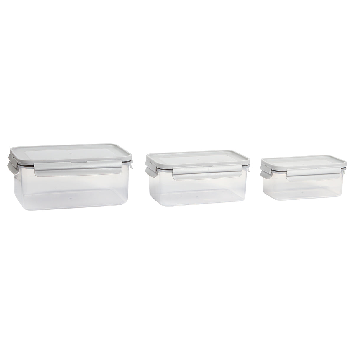 set de contenedores de diferentes tamaños, para alimentos fabricados en polipropileno y tapa de silicón.