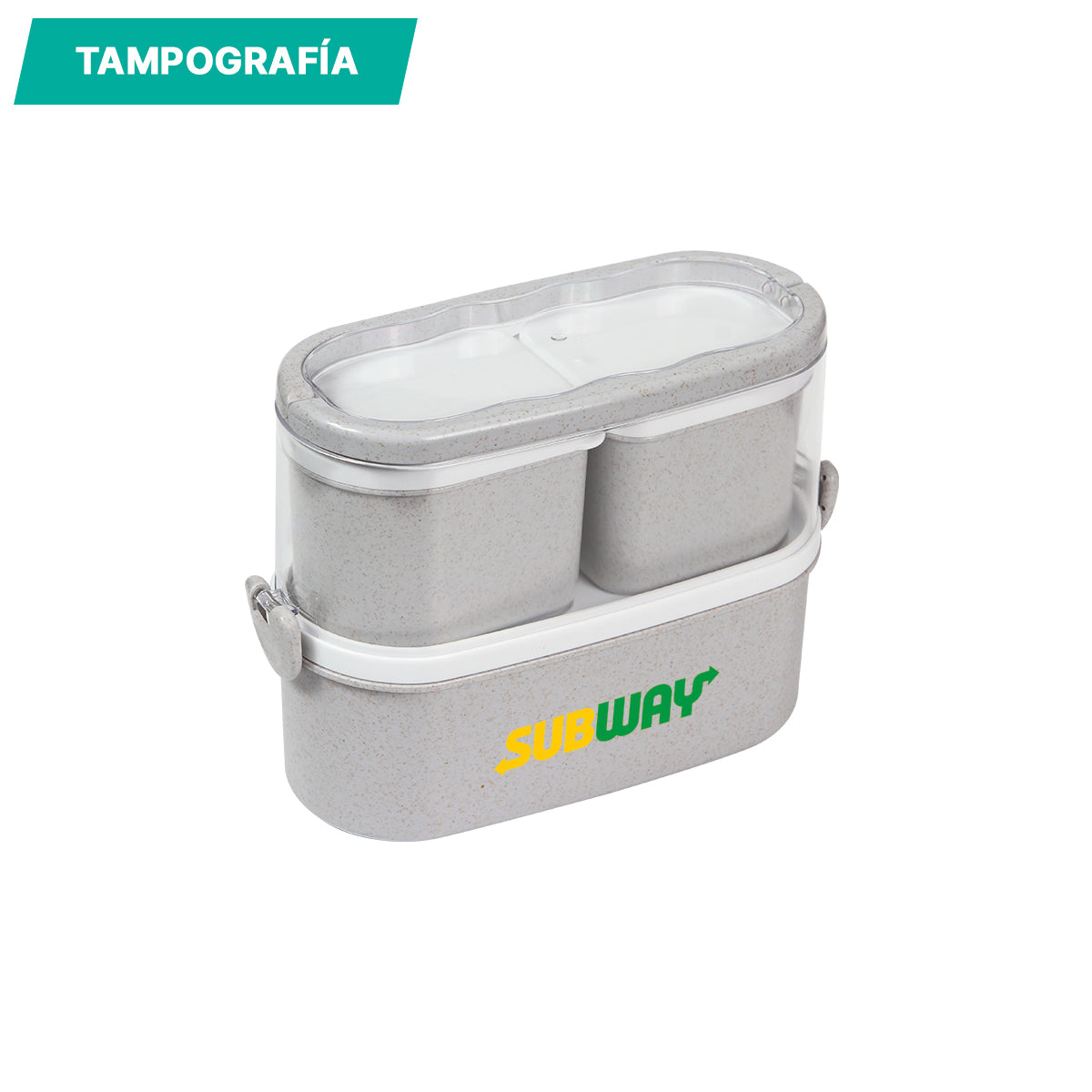 juego de 3 contenedores para alimentos con tapa hermética fabricados en polipropileno, fibra de trigo y plástico tipo ps, incluye un tenedor y una cuchara. capacidad de 1,500 ml.