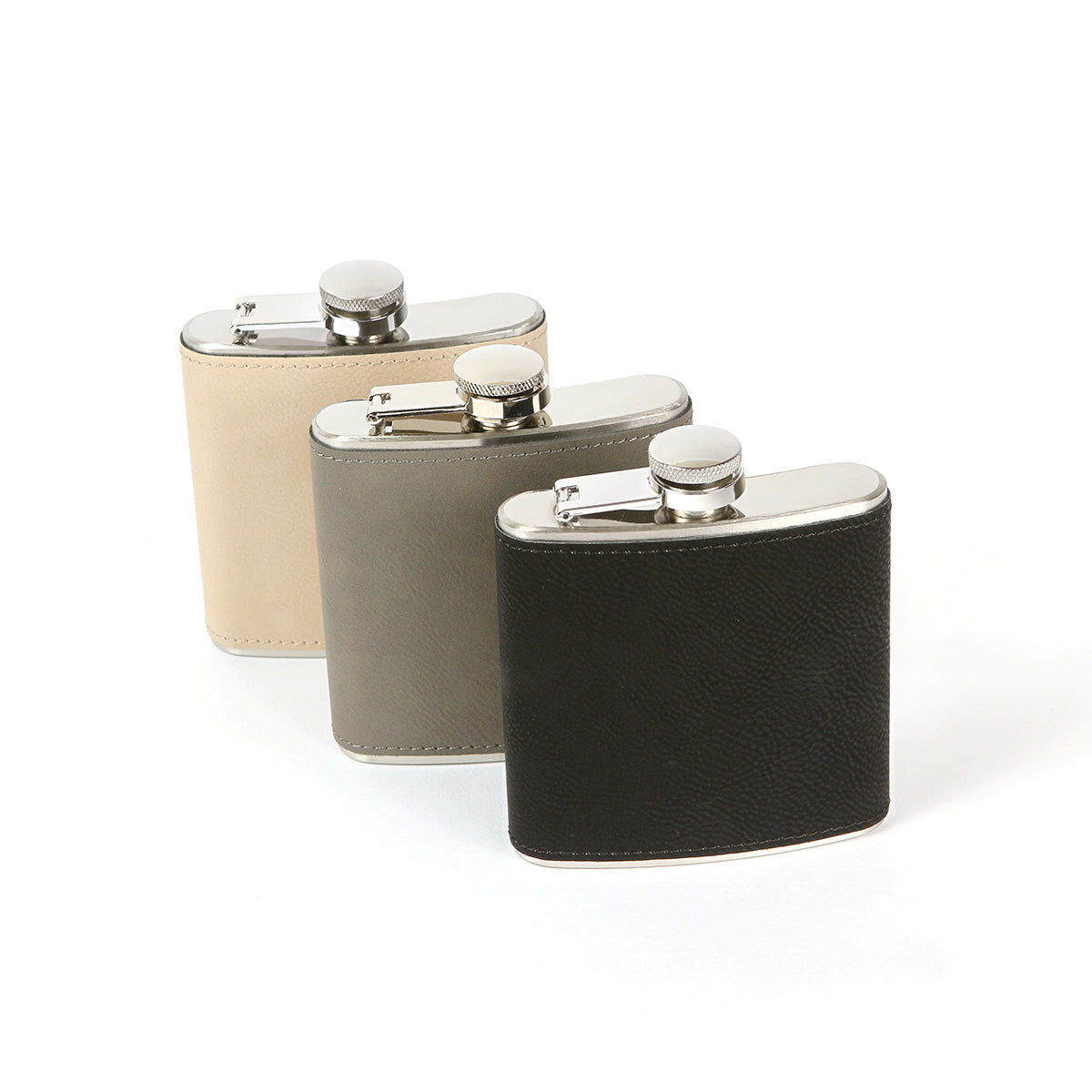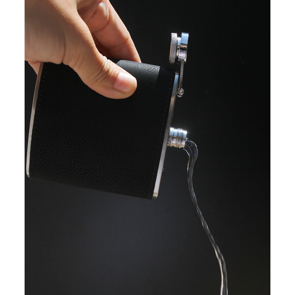 licorera anforita fabricada en acero inoxidable con cubierta de curpiel, capacidad de 175 ml. (6 onzas). tiene el tamaño y diseño elegante, la hace ideal para llevarla siempre contigo.