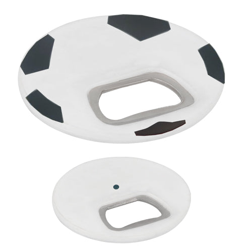 destapador con imán con diseño de balón de soccer.