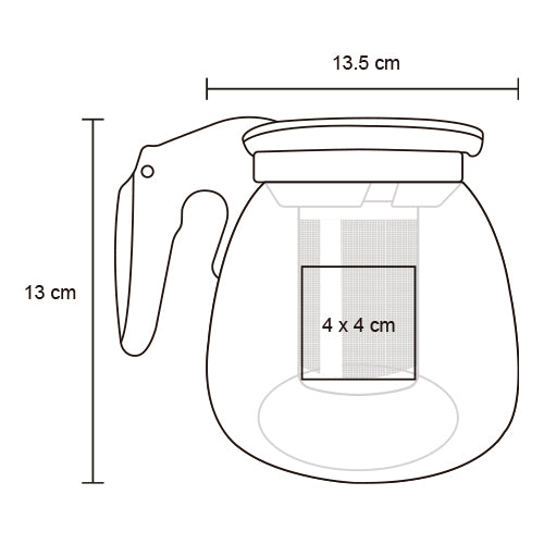 cafetera de cristal con infusor de acero inoxidable con tapa y asa de plástico.