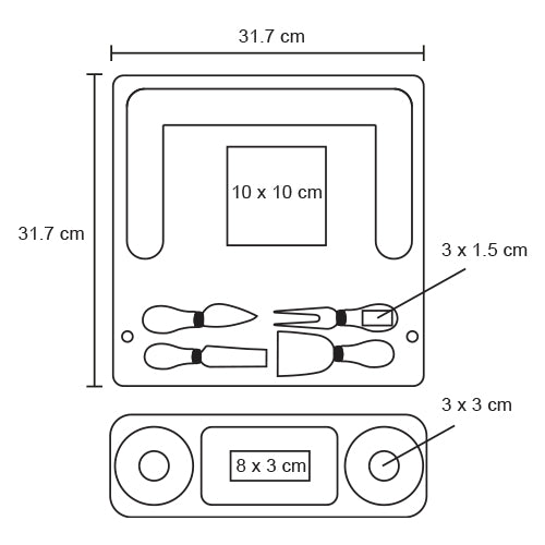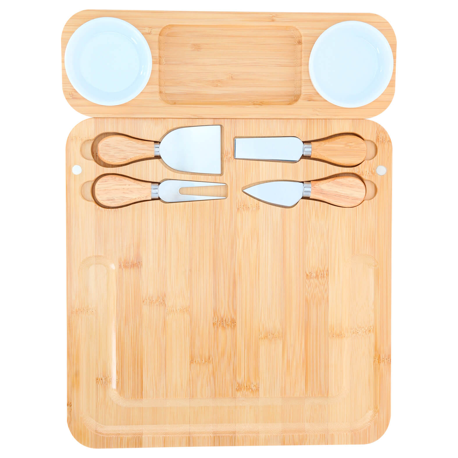 tabla de quesos separable que incluye 2 mini platos de cerámica, 1 tenedor, 1 cuchillo, 1 cuchillo de avión estrecho y 1 cuchillo de pala.