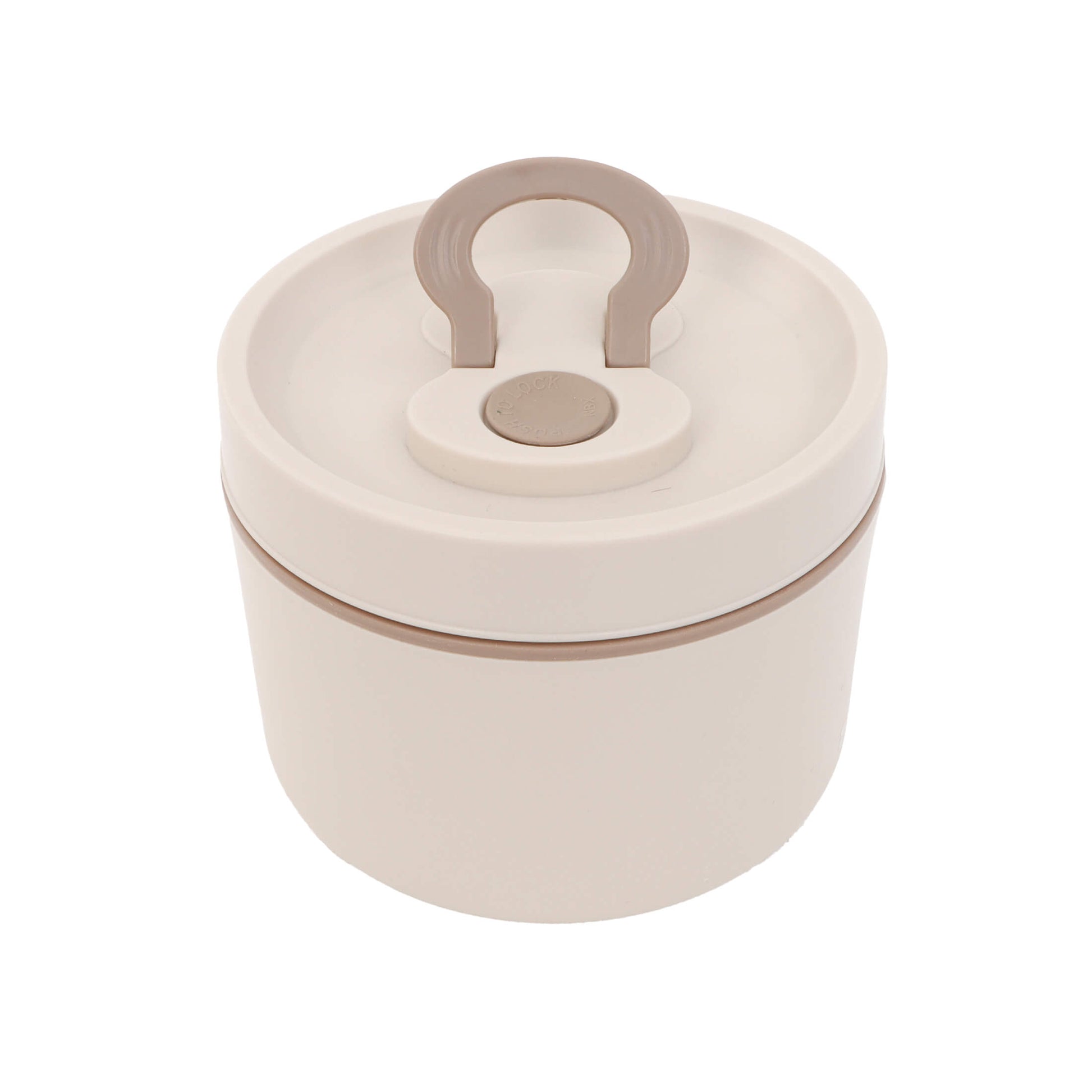 contenedor de alimentos con interior de acero inoxidable, cuchara, tapa enroscable y asa superior. (no apto para microondas).