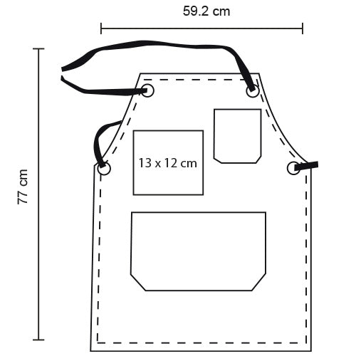 delantal con doble bolsa en la parte inferior, una en la parte superior y correas ajustables.