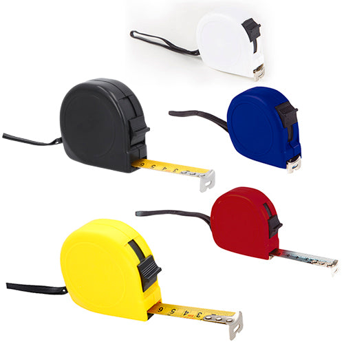 flexómetro con cinta metálica de 5 m. incluye correa, clip y seguro.
