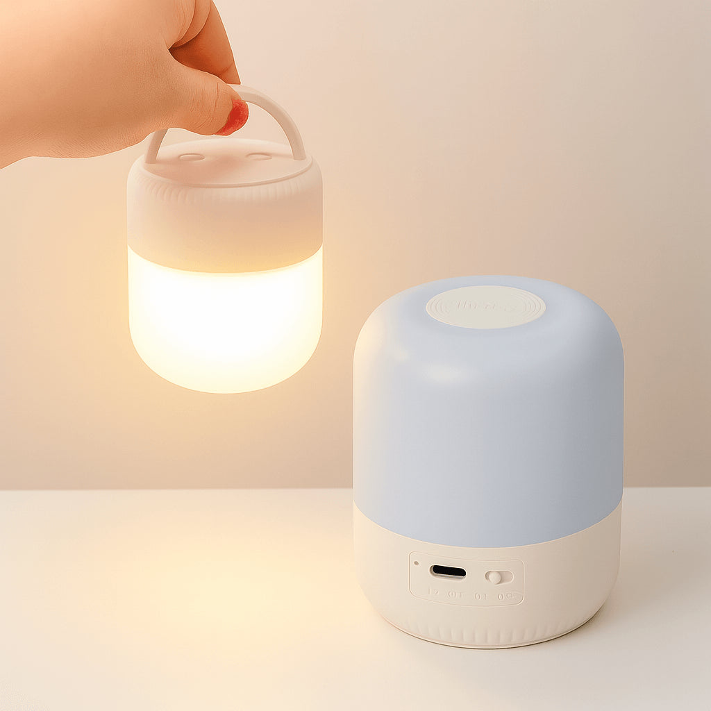 lámpara de luz led touch, recargable, con 3 niveles de intensidad y botón de seguridad para encendido/apagado. incluye cable de carga tipo c.