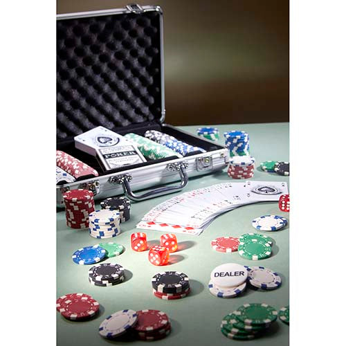 incluye 200 fichas, 2 barajas plastificadas, 5 dados, 1 ficha de dealer y llaves.