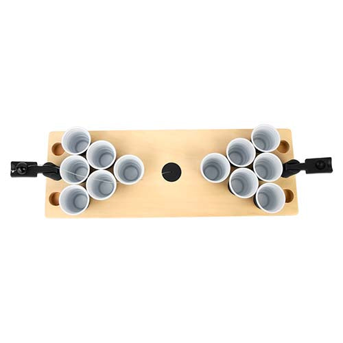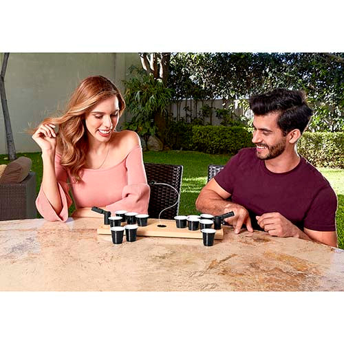 juego mini beerpong. incluye 12 vasos de plástico rígido y sistema de catapultas con pelota. la madera es un producto natural el cual puede presentar variaciones en tonalidades y vetas.